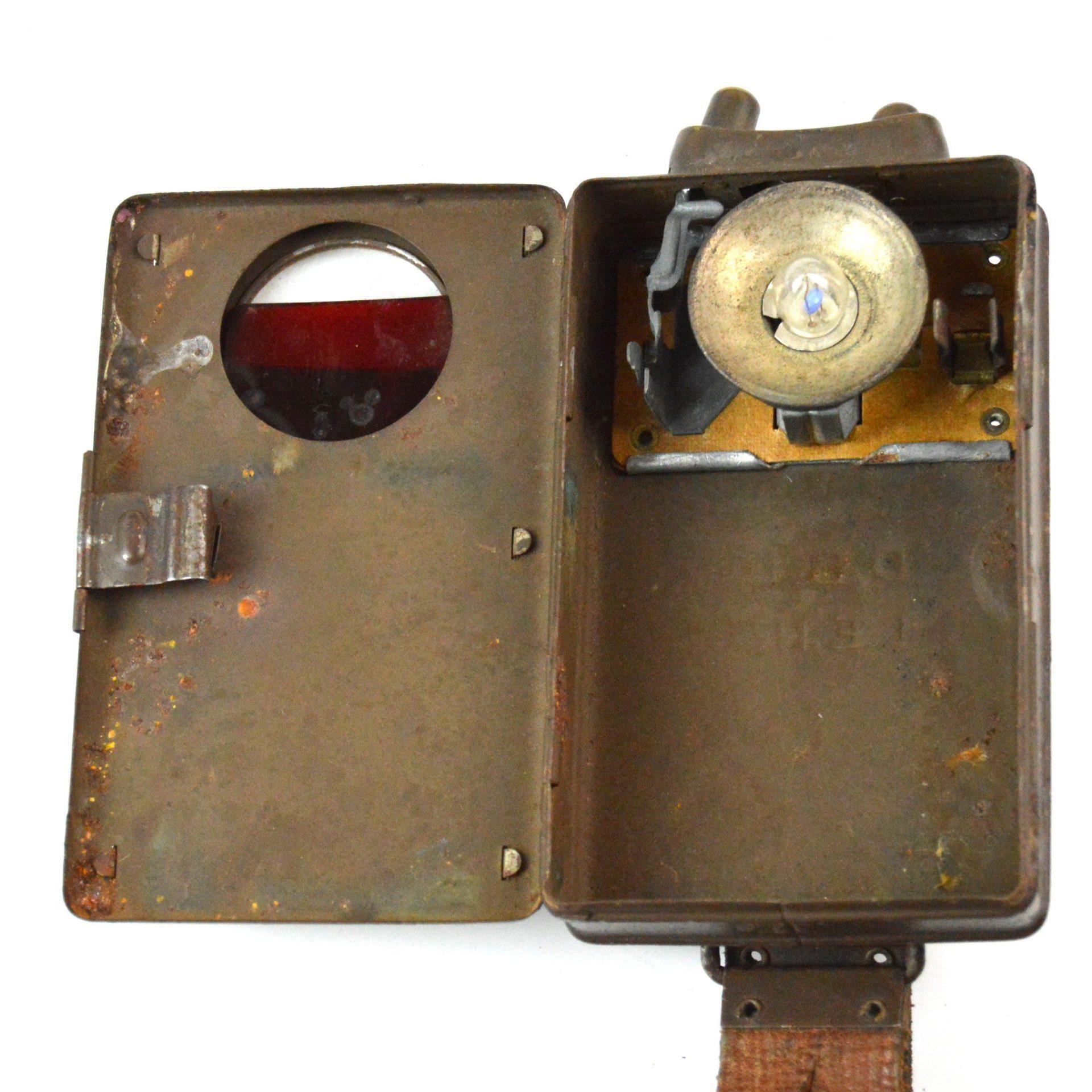 British WW2 Electric Lamp No. 4 Signalling Torch, marked under the strap “DB Ltd, LE No. 4”