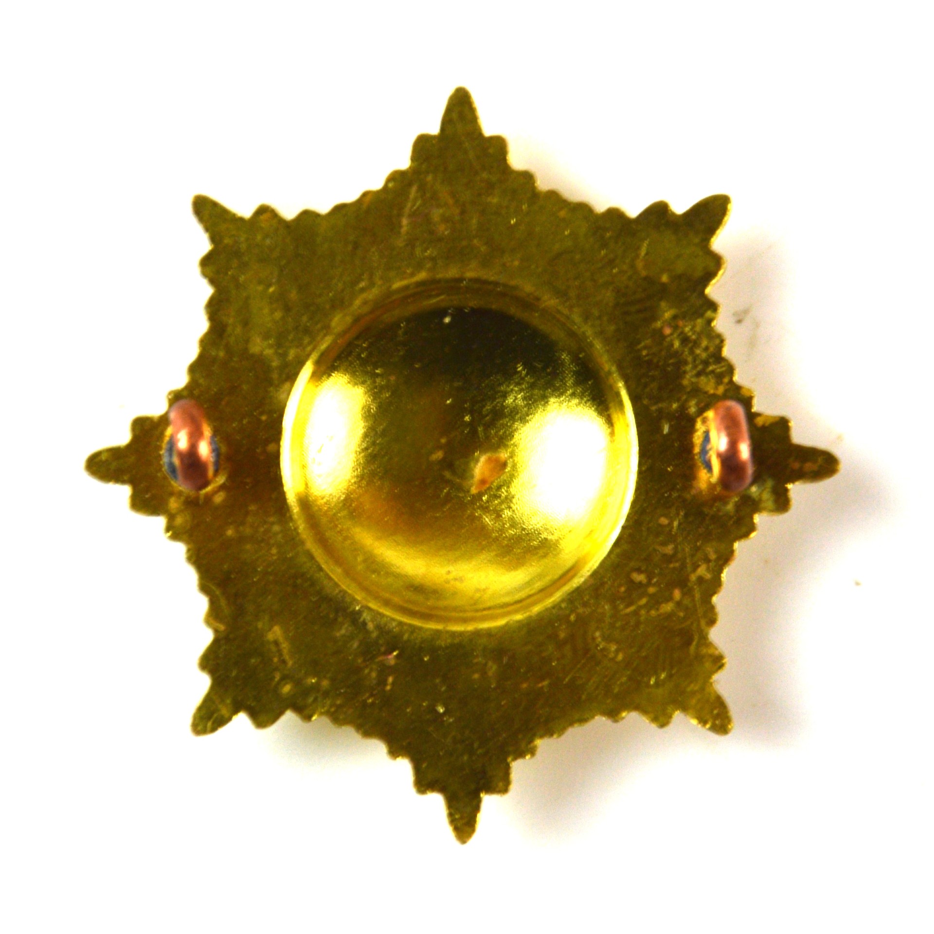 A Coldstream Guards Guardsman’s cap badge, one of the most senior regiments of the British Army, Guards Division. This British military cap badge displays the distinctive Coldstream Guards insignia in well-defined relief, executed in gilding metal with clear detailing, designed for wear on service dress and ceremonial caps. The reverse is fitted with standard lugs for secure attachment.