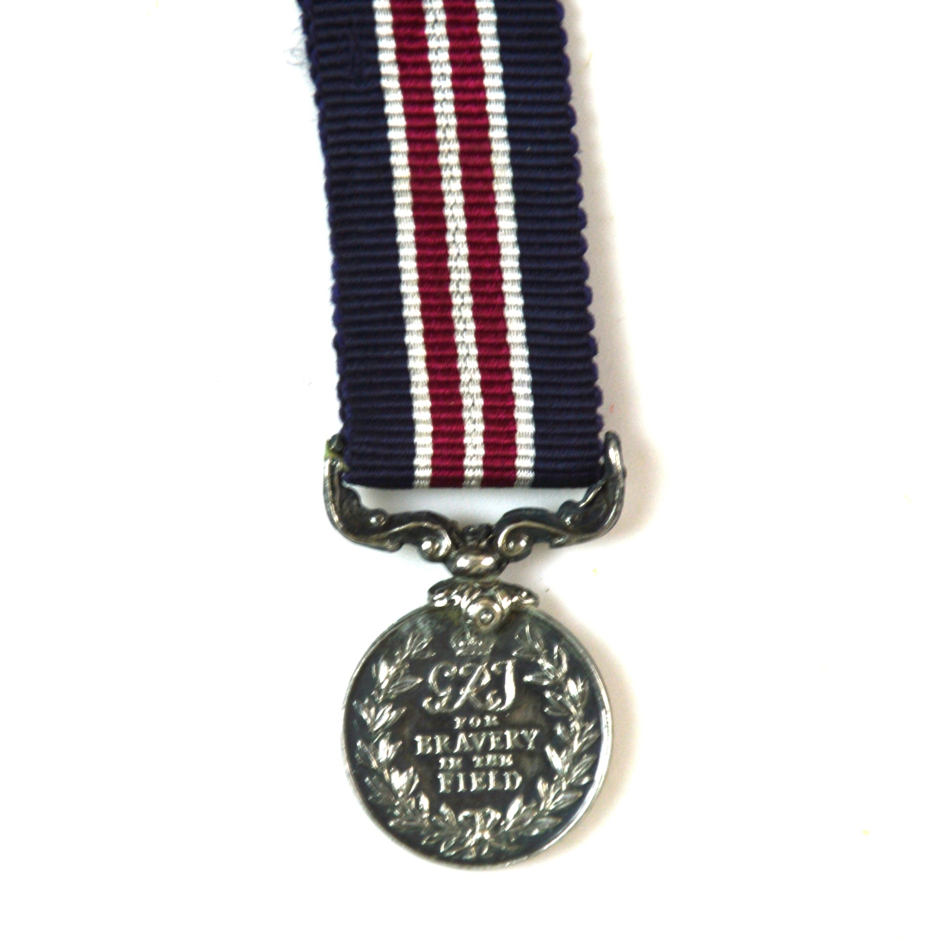 A contemporary miniature of the Military Medal (MM) as issued during the reign of King George VI (1938–1948). The MM was awarded to non-commissioned officers and other ranks of the British and Commonwealth forces for acts of bravery in the field, and was one of the most widely recognised gallantry awards of the Second World War.