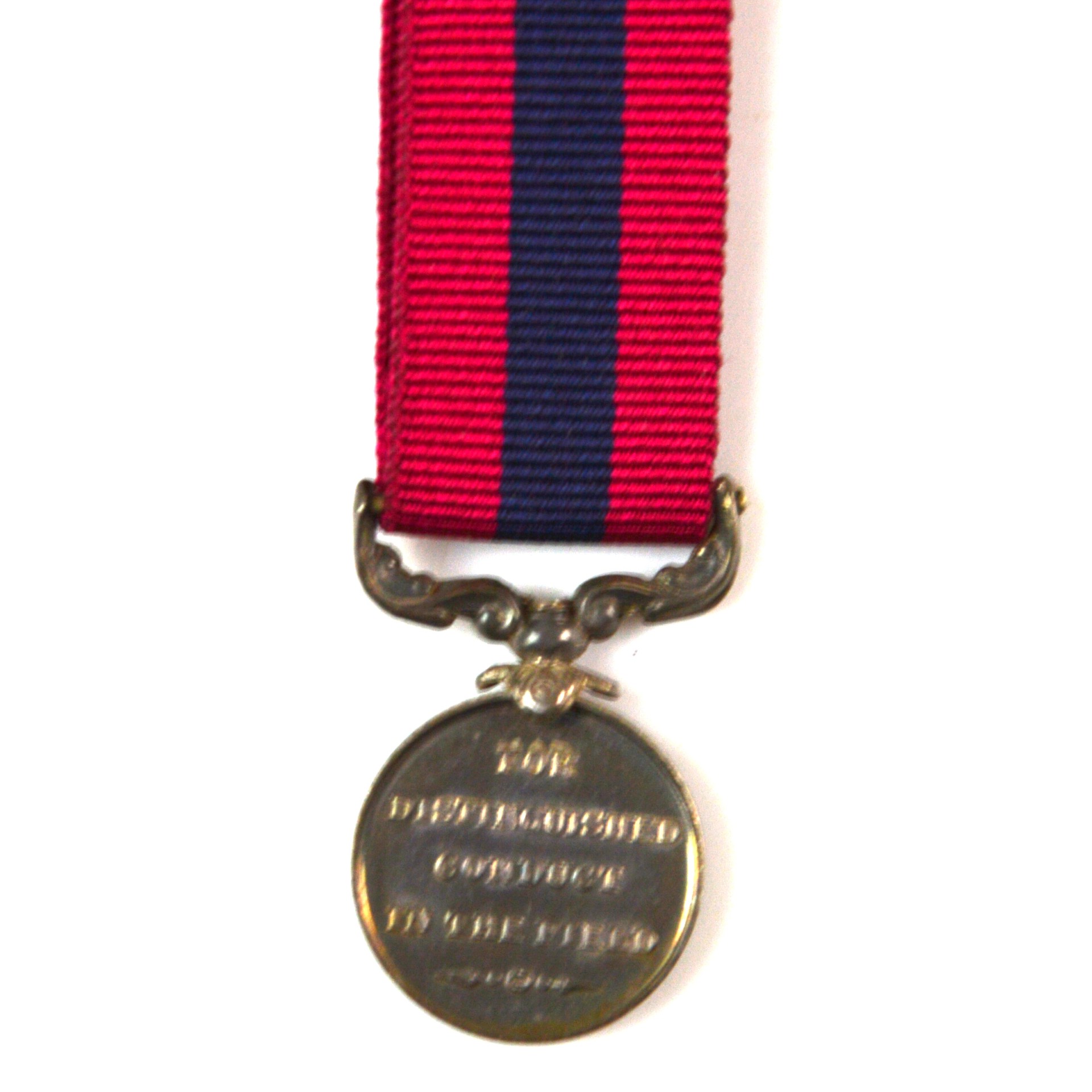 A contemporary miniature of the Distinguished Conduct Medal as awarded during the Victorian era (1854–1901). Such miniatures were privately purchased for officers’ and senior NCOs’ evening or mess dress and mirror the appearance of the original full-size award.