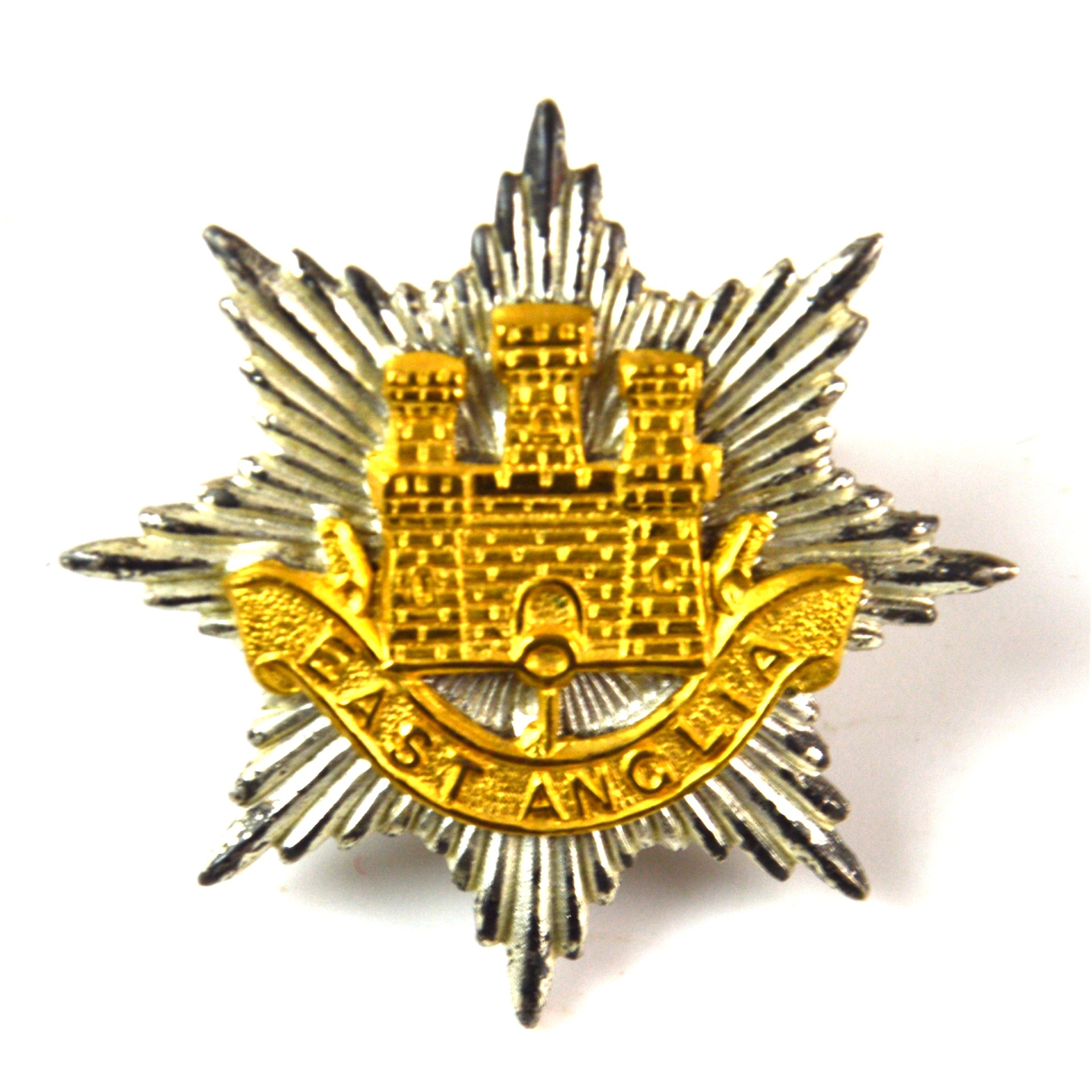 An original East Anglia Brigade Officer’s Cap Badge, produced to the 1959–1968 pattern worn during the short-lived existence of the brigade before the formation of the Royal Anglian Regiment in 1964 and continued limited wear until the final transition in 1968. This badge represents a key transitional phase in British infantry reorganisation.