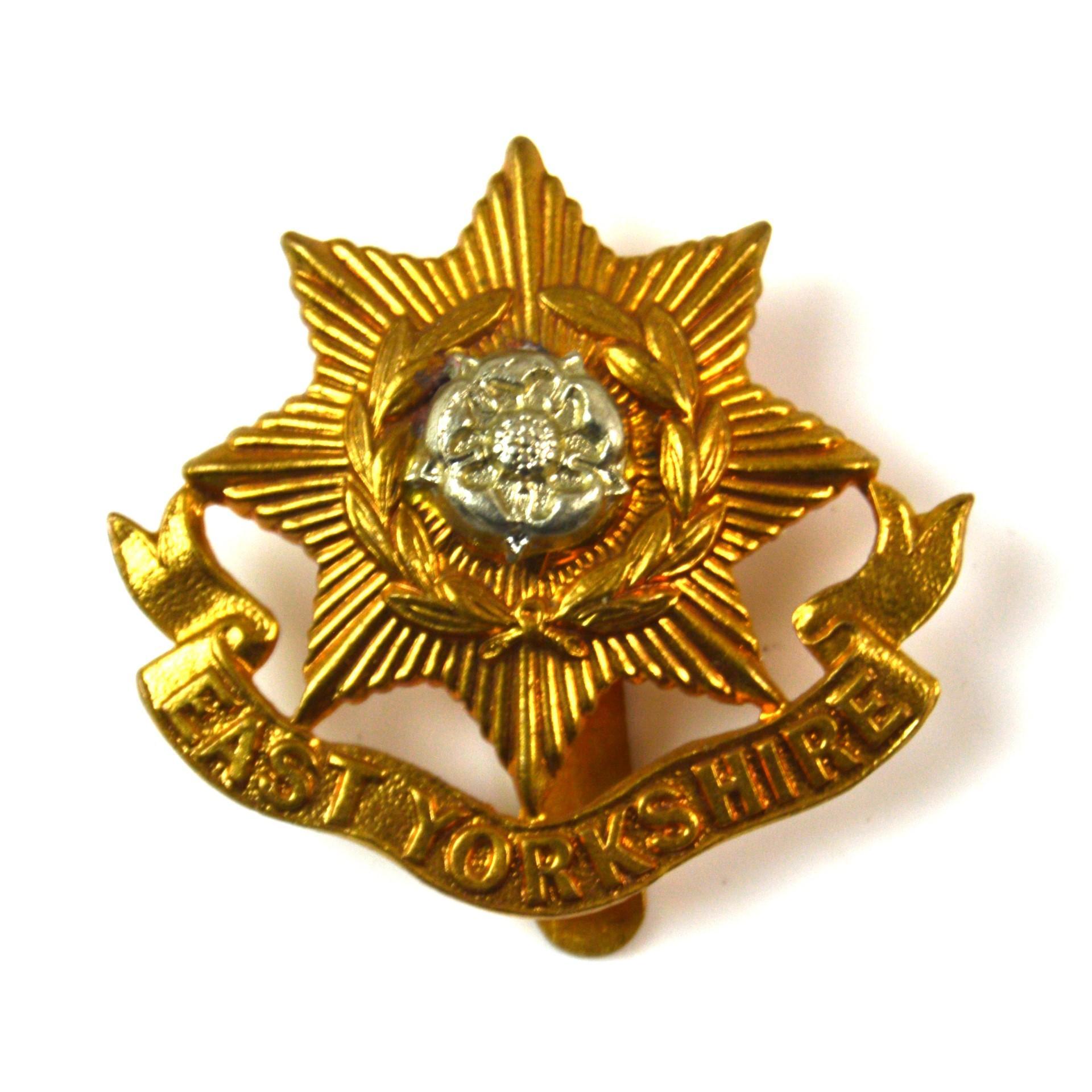 East Yorkshire Regiment Cap Badge, Restrike. Bimetal cap badge with hook slider fitting