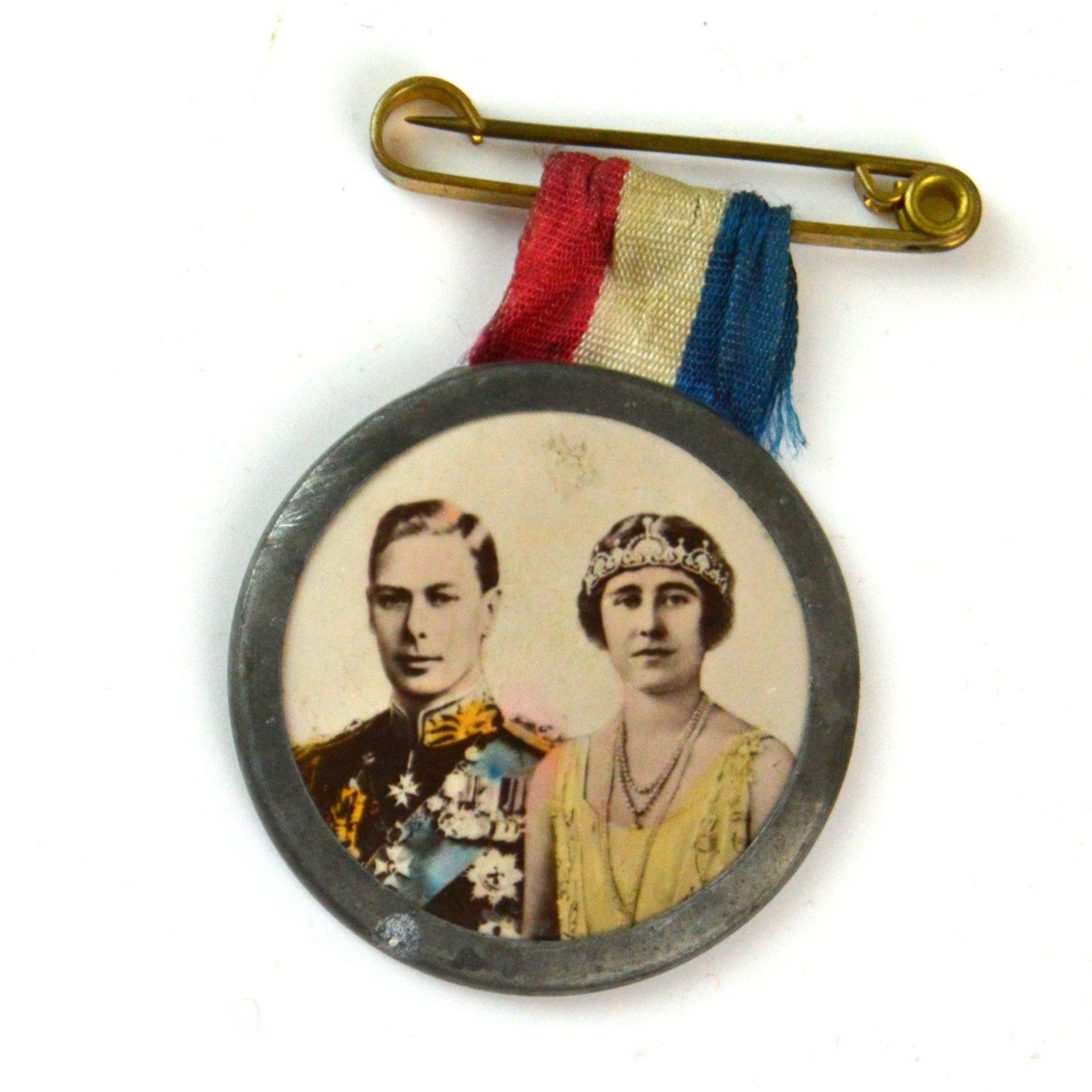George VI Coronation Medal, depicting George VI and Queen Elizabeth with a ribbon bearing the national colours and a broach pin
