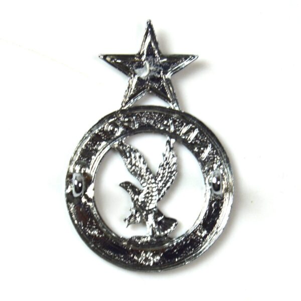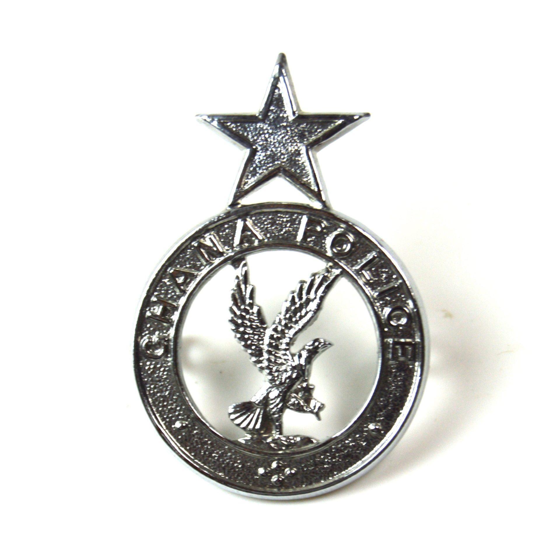 Ghana Police Chrome Cap Badge with east-west eyed lug fittings on the reverse