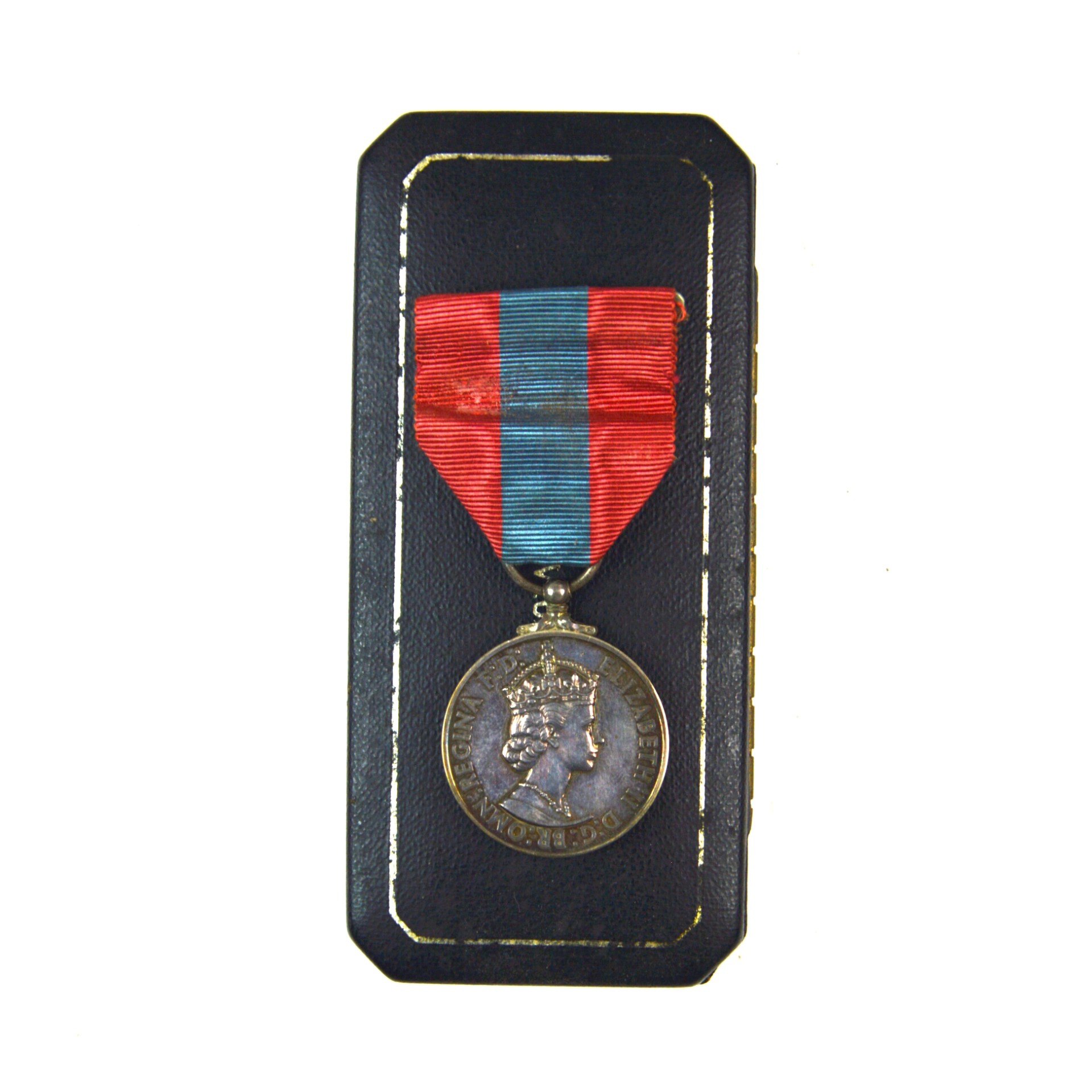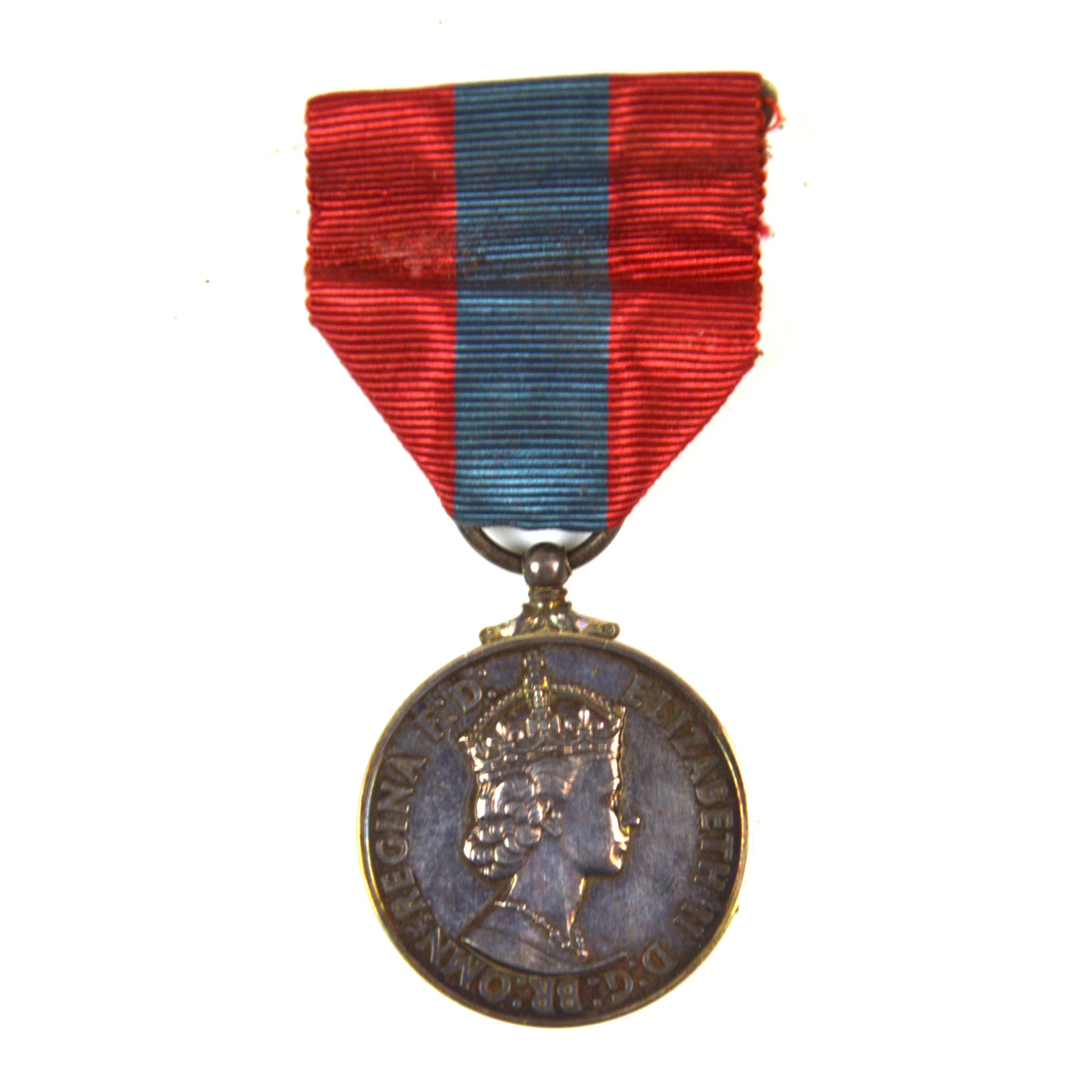 The medal is struck in sterling silver, with the obverse displaying the crowned effigy of Queen Elizabeth II and the inscription “ELIZABETH II D: G: BR: OMN: REGINA F.D.”. The reverse bears the image of a naked man resting from his labours with the inscription “For Faithful Service”
