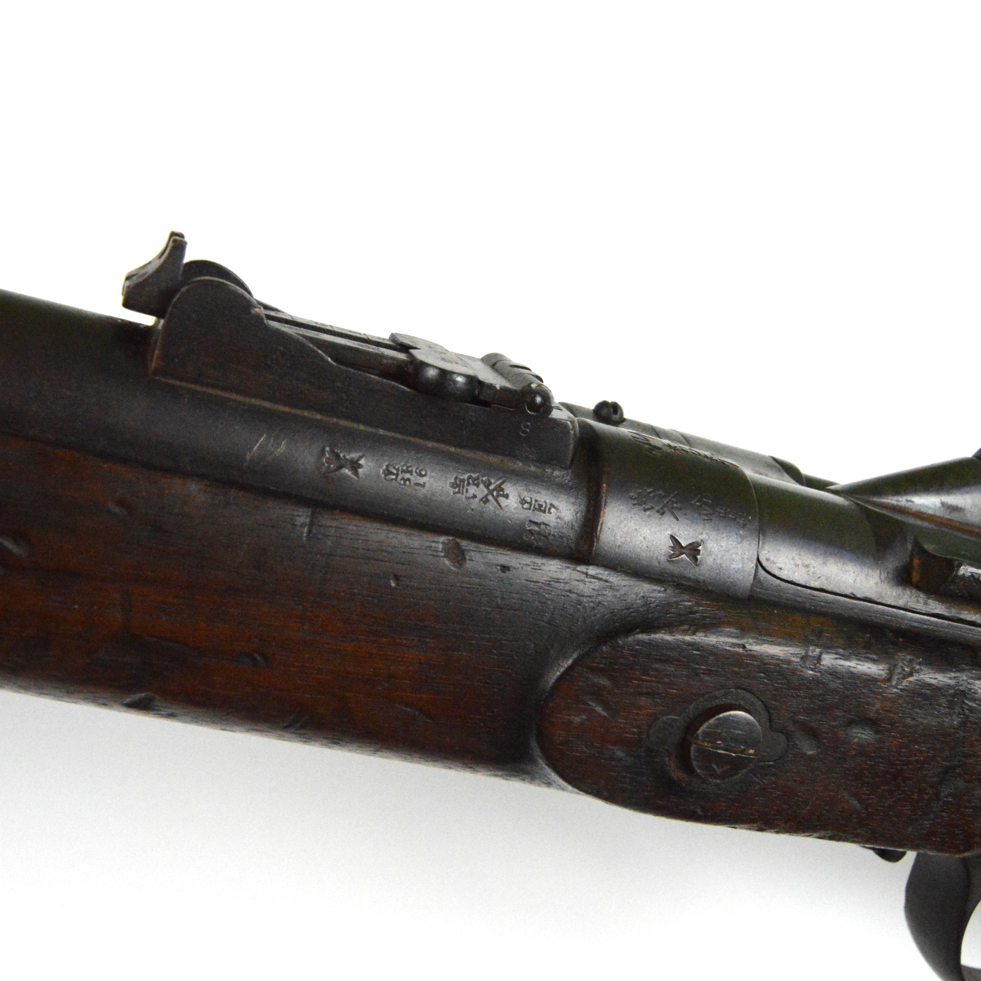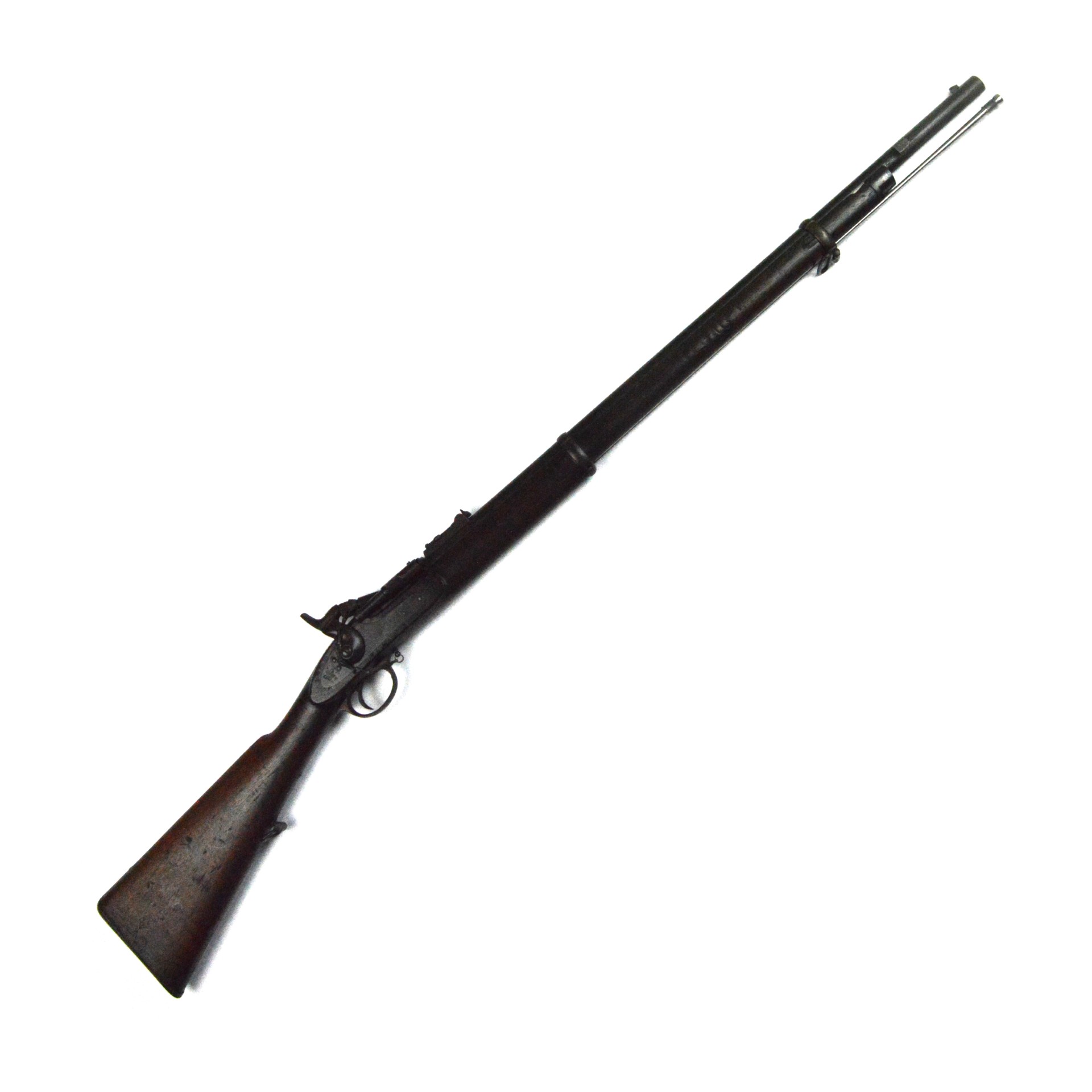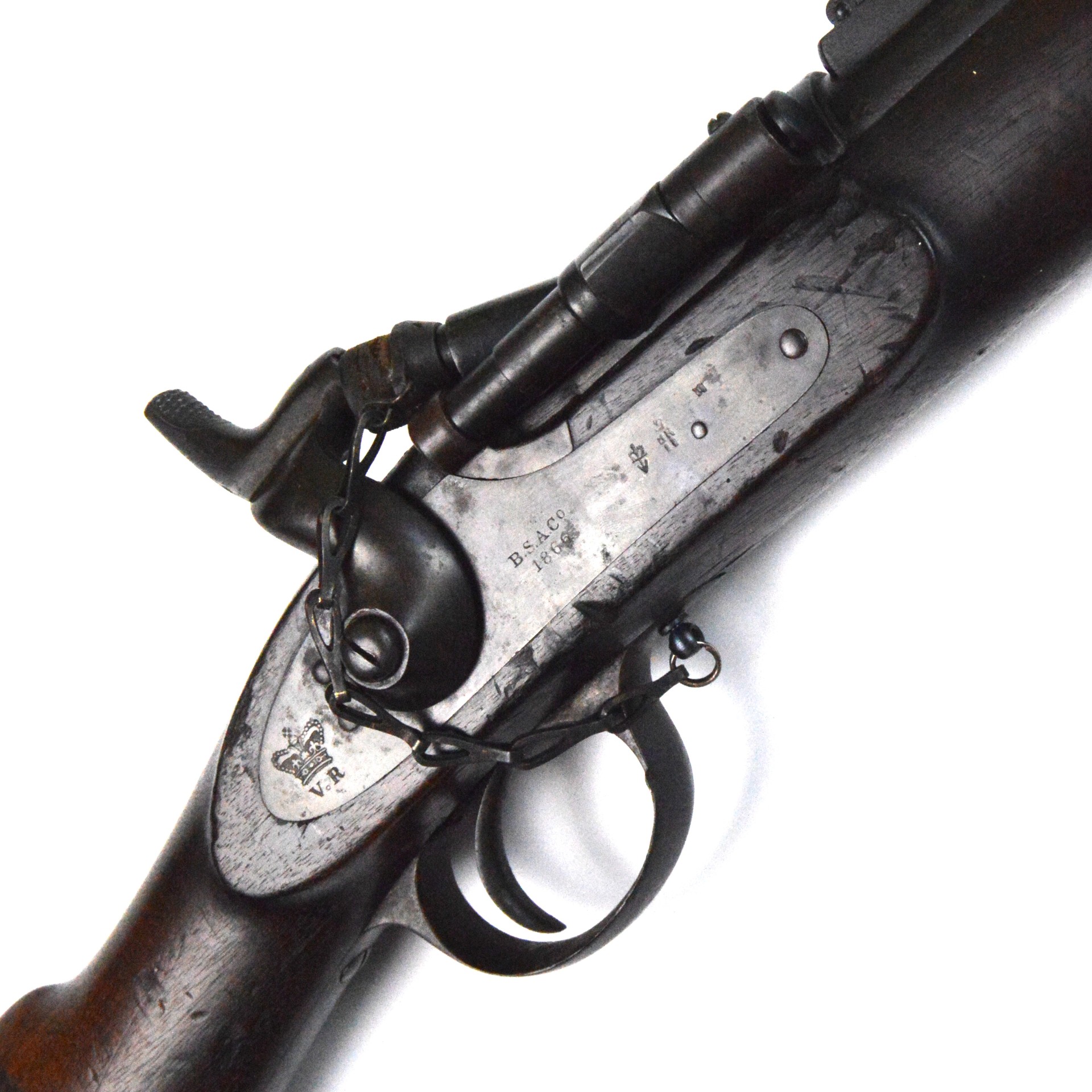 An original British-made 2-band Snider-Enfield Mk. II** rifle, converted from the 1853 Pattern Enfield Rifle, made by BSA Co. (Birmingham Small Arms Company), and dated 1866 on the lock plate. This example was supplied to the New Zealand Militia during the mid-to-late 19th century and is chambered in .577 Snider.