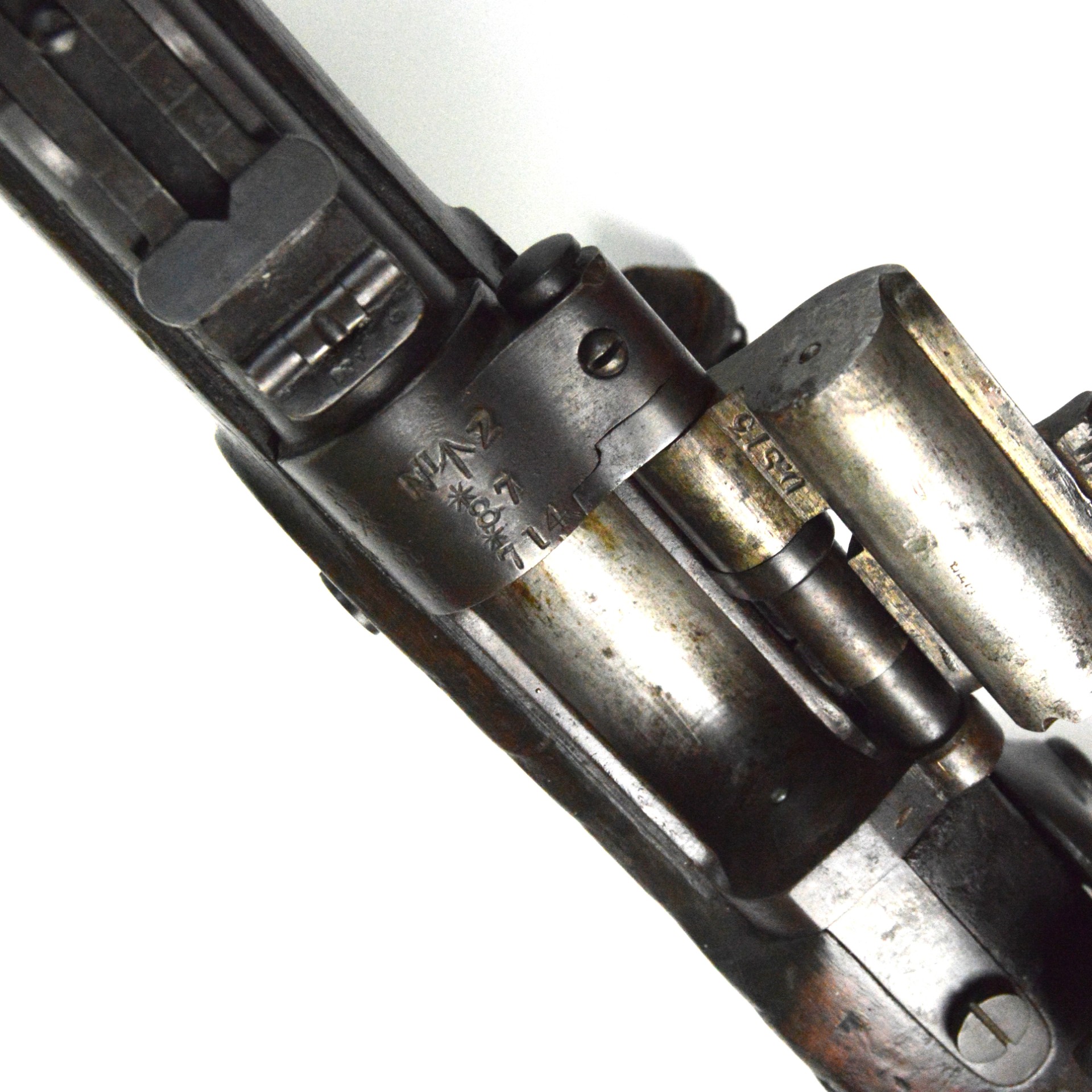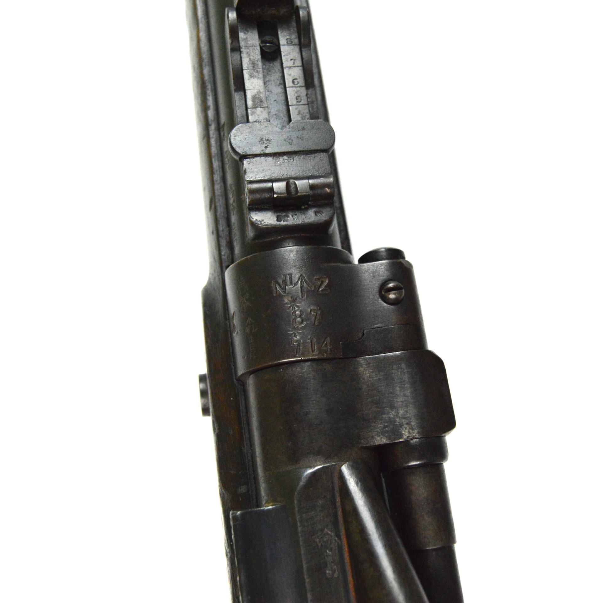 The markings on the stock read “(Double-Broad Arrows – sold out of stores) / 2C / B / 7 – 85”, as well as the aforementioned unit markings below the tang of the barrel.