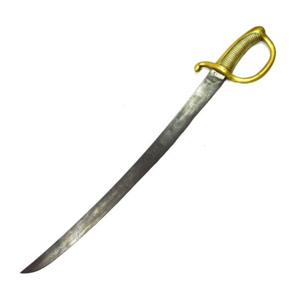Original French Early Briquet Sabre, marked “Henraux” on the ricasso. Single-edged 585mm curved unfullered blade. One-piece brass grip with single knuckle-bow bar guard. Overall size: 730mm.