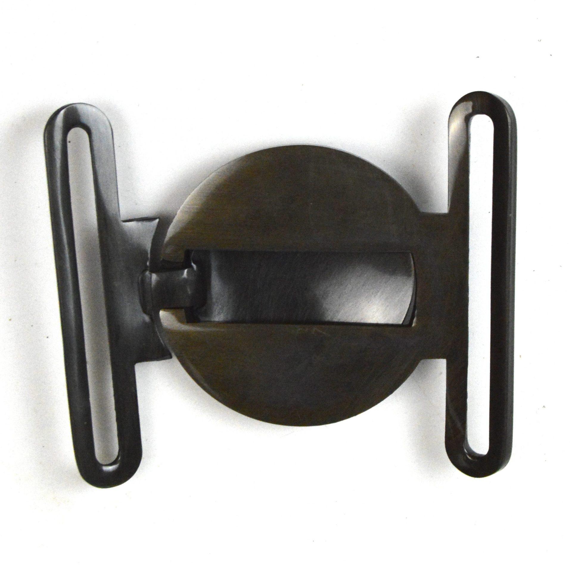 Two-piece bronzed belt buckle with a blank reverse. 63mm (2 1/2″) Belt loop.