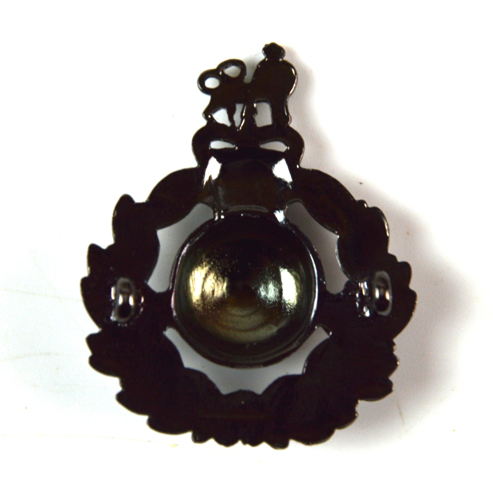 Die-struck in bronze with well-defined detail, the badge displays the traditional Royal Marines cap badge design. The badge is fitted on the reverse with standard lugs for cap or beret attachment.