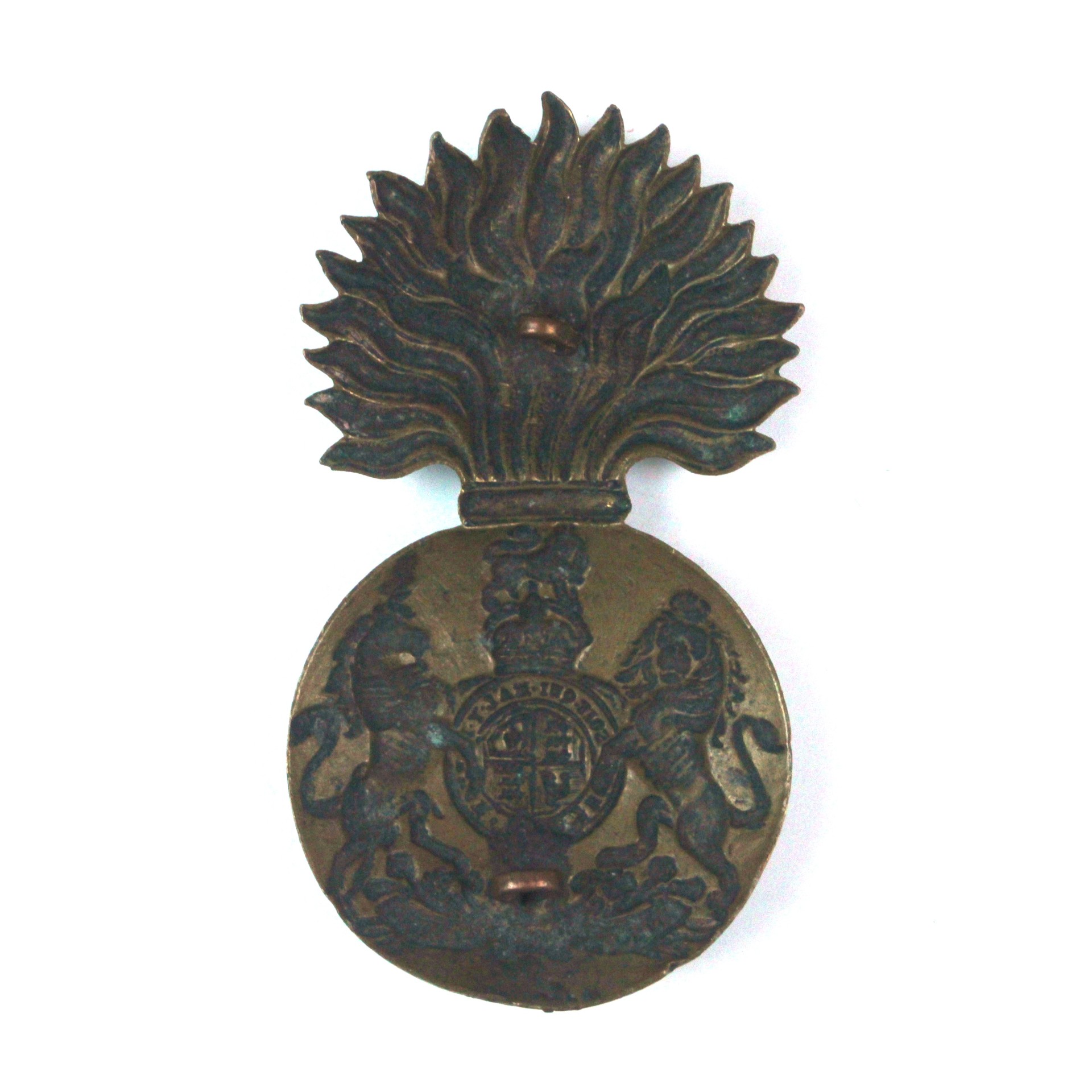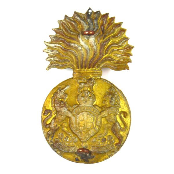 An original Royal Scots Fusiliers (RSF) glengarry cap badge featuring the King’s Crown, denoting use from the reign of Edward VII in 1901 to the end of George VI in 1952. This badge displays the regiment’s flaming grenade bearing the Royal Coat of Arms and surmounted by the King’s Crown.