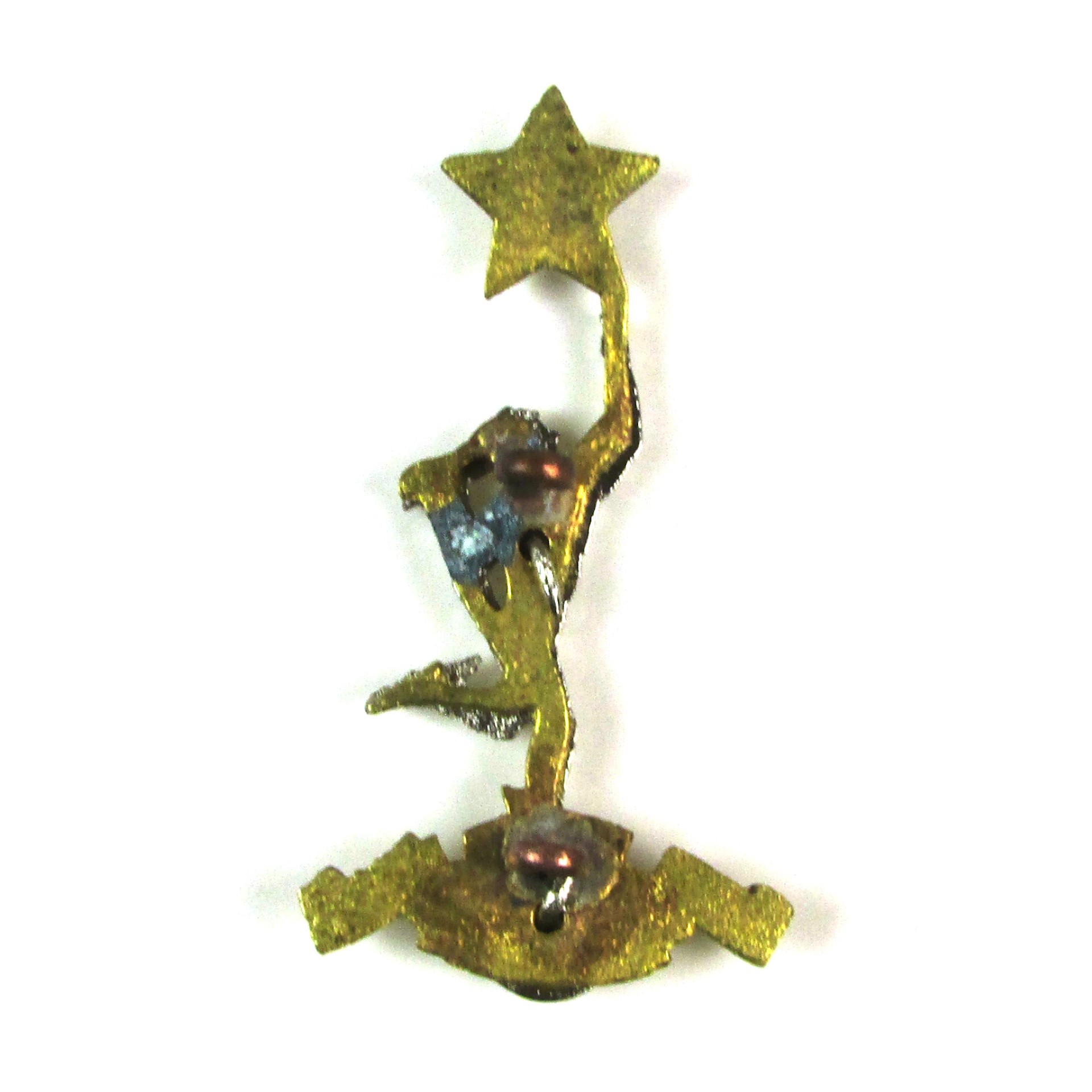 This is the post-1947 cast metal version, produced in brass and nickel plate, and worn on the beret or service cap with north-south eyed lugs on the reverse