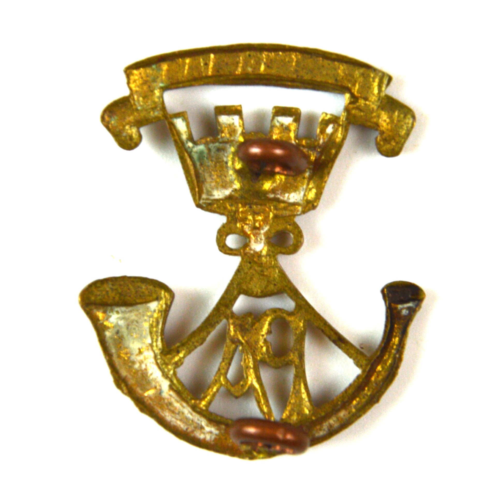 A collar badge issued to the Somerset Light Infantry (Prince Albert’s), conforming to the 1930–1950 pattern. The badge displays the regiment’s designated insignia in relief, executed in metal with clear and well-defined detailing, consistent with British Army collar insignia of the period. Designed for wear on service and dress uniforms, it reflects the standard form and construction associated with interwar and early post-war regimental dress regulations. The reverse is fitted with original lugs for attachment.