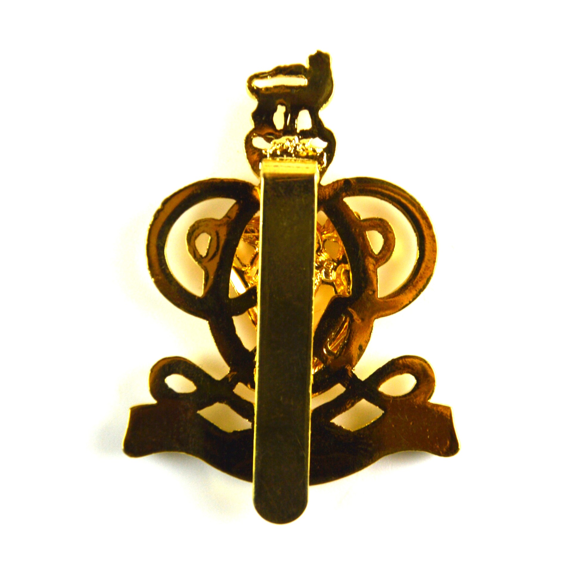 Manufactured in gilt, silver plate and enamel with clear and well-defined relief, this badge was intended for wear on service dress caps or berets by Queen’s Royal Hussars personnel. It is a collectable example of contemporary British Army cavalry insignia and modern regimental history. The reverse is fitted with standard lug fittings for secure attachment.