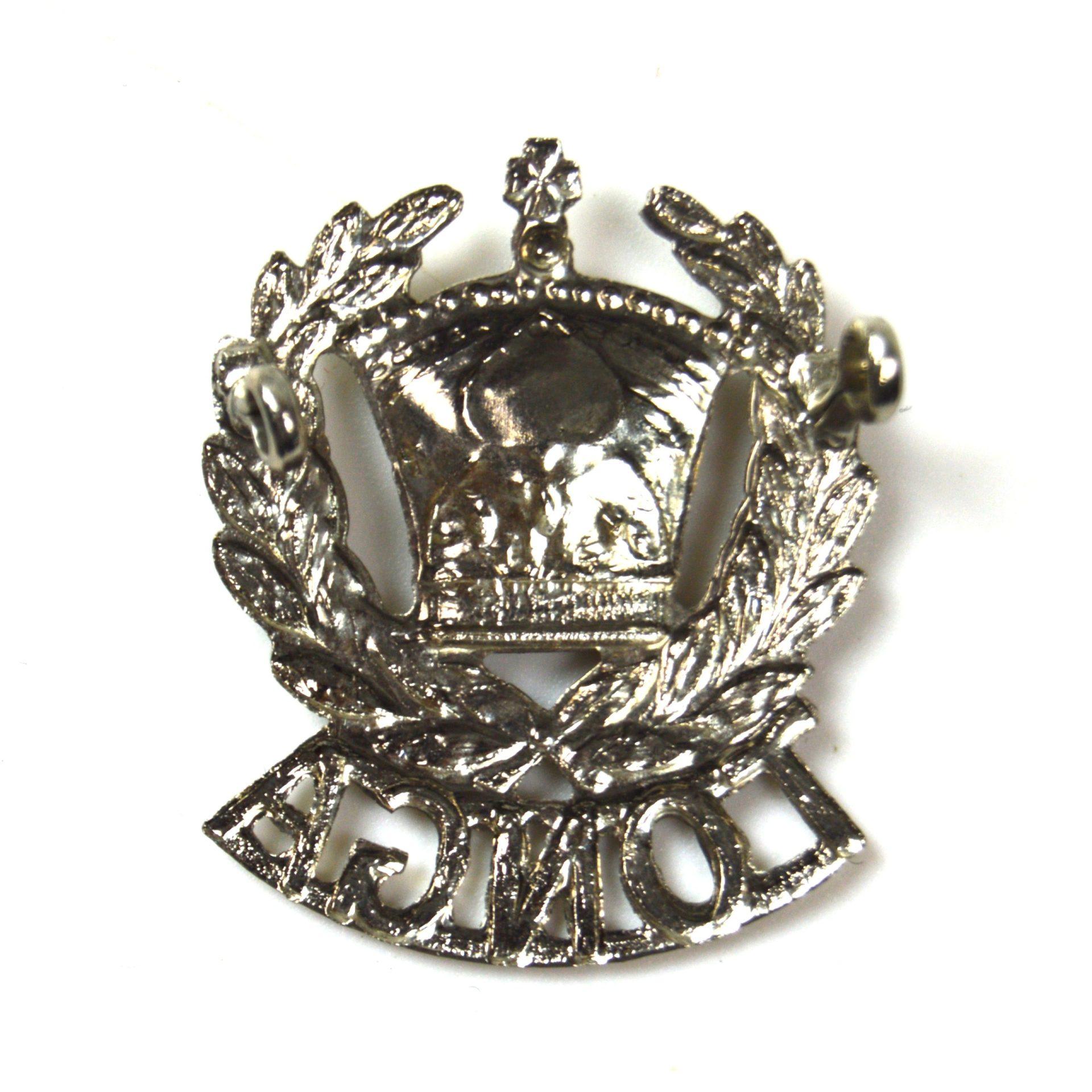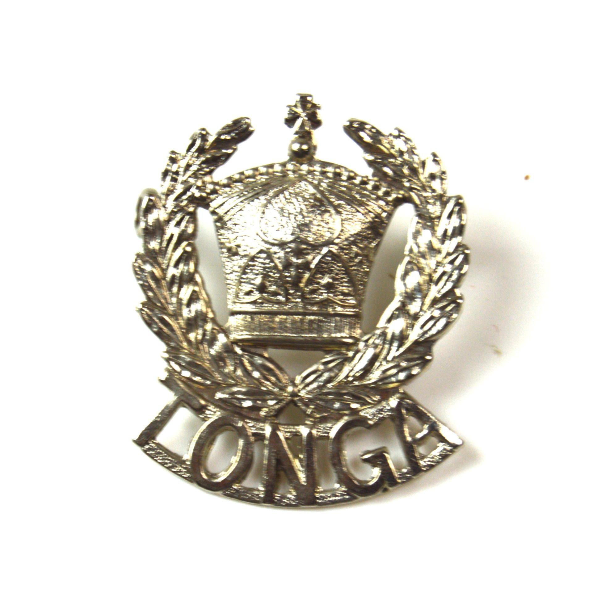Tonga Police Nickel-Plated Cap Badge with east-west eyed lugs on the reverse
