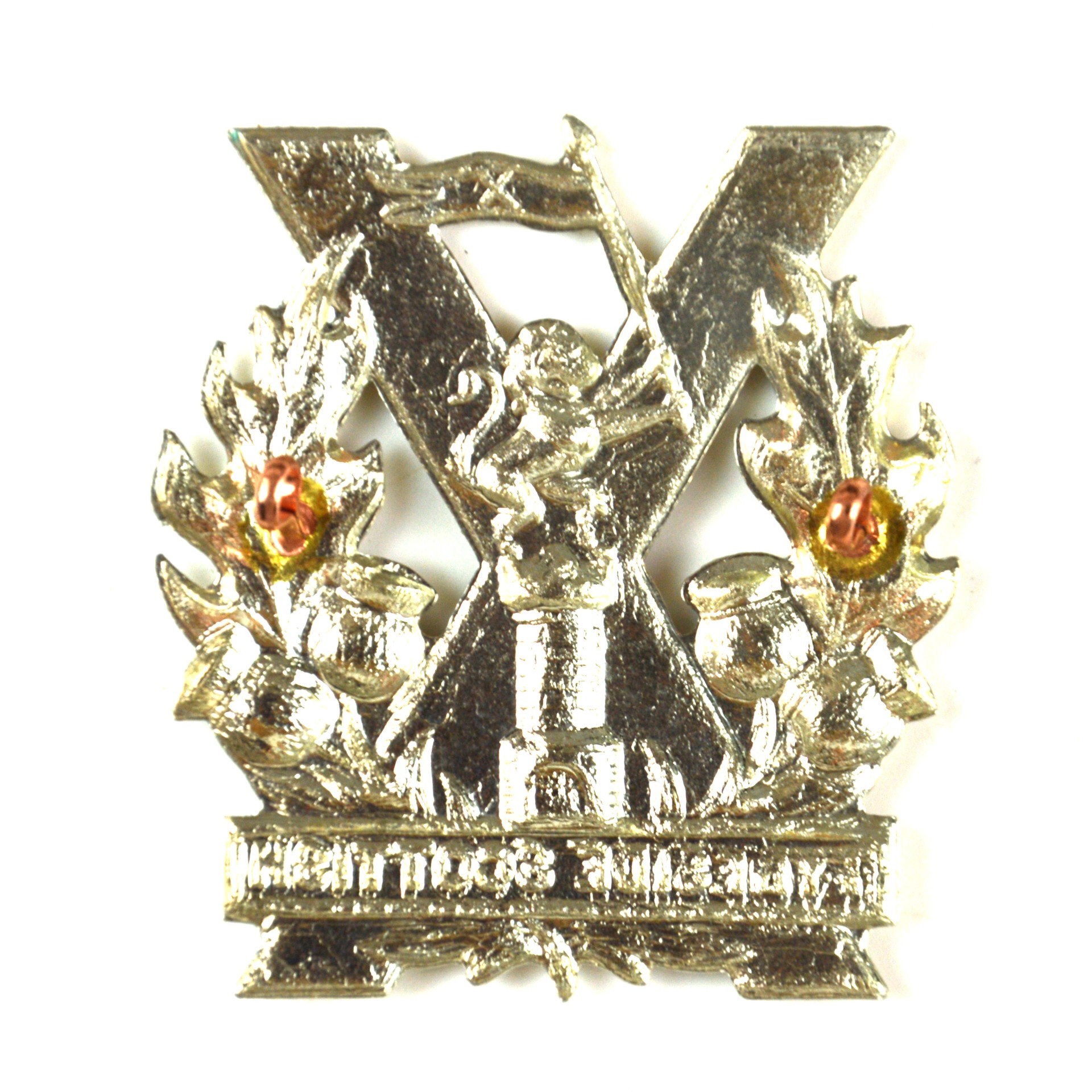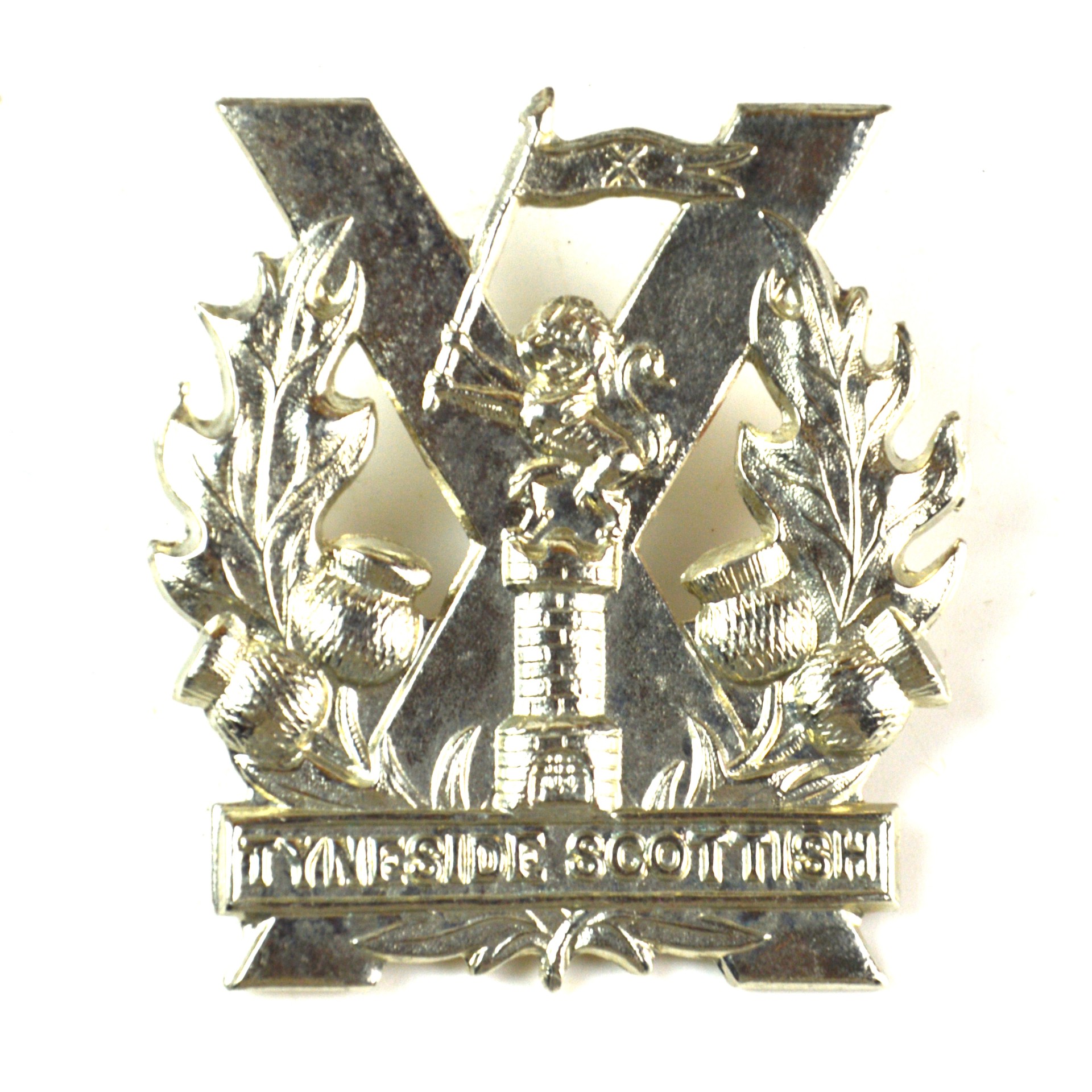 Restrike Tyneside Scottish (1915–1918 Pattern) Glengarry badge, a reproduction of the badge issued to volunteers of the Tyneside Scottish Brigade during the First World War. Formed in 1914 as part of Kitchener’s New Army, the Tyneside Scottish battalions (20th–23rd Battalions (1st-4th Tyneside Scottish Battalions, Northumberland Fusiliers) wore distinctive Scottish-style insignia reflecting their strong regional and cultural identity. The brigade’s first major action was the Battle of the Somme, where it sustained a large number of casualties. The Brigade was subsequently brought up to strength and served at Armentiers, the Battle of Arras, and the final battles of 1918. The brigade was disbanded in 1918.