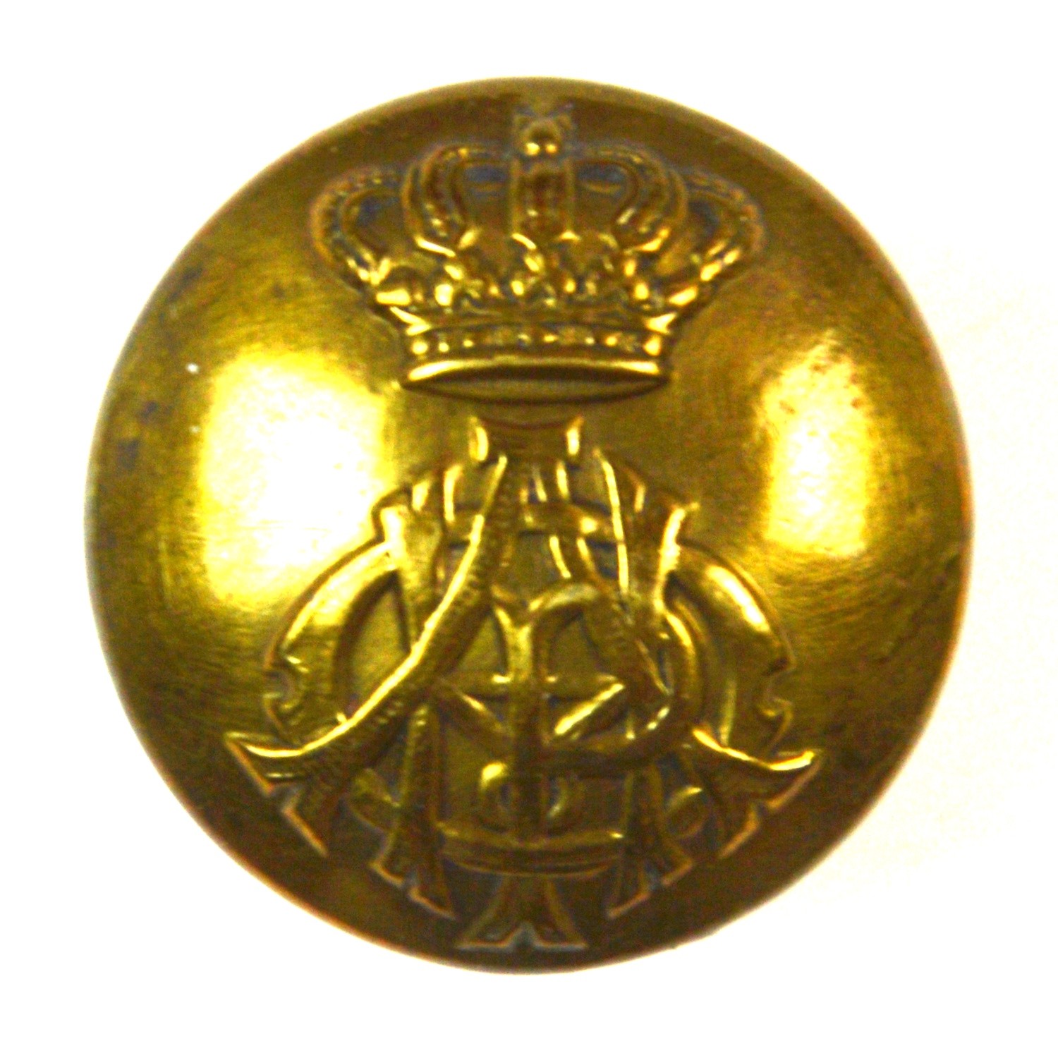 11th Hussars (Prince Albert’s Own) uniform button, 25mm size, executed in brass and dating to the 1902–1914 pattern. This button features the regiment’s distinctive device in clear relief, incorporating the “Prince Albert’s Own Hussars” monogram, surmounted by the Prince Albert’s Crown.