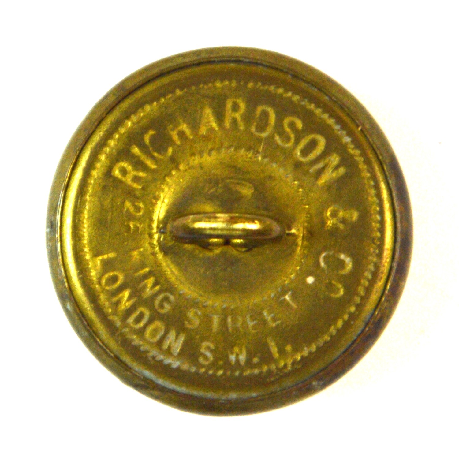 Manufactured in brass with a loop shank fitting to the reverse, this example provides a well-defined representation of early twentieth-century British cavalry insignia. 11th Hussars buttons are collected as examples of cavalry memorabilia, Edwardian military dress, and British Army uniform components.