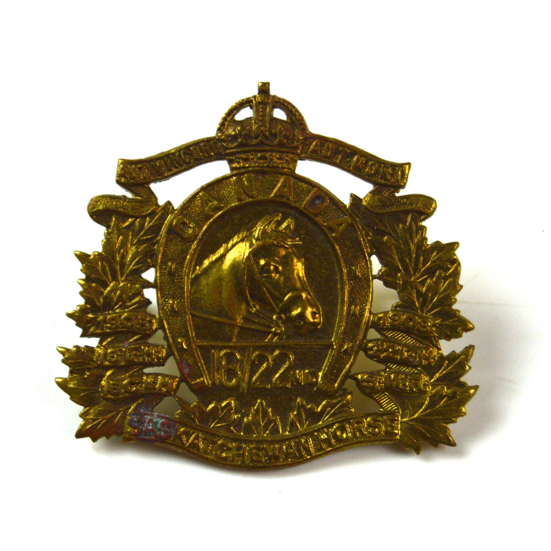 16th/22nd Saskatchewan Horse (1940-43 Pattern) Cap Badge, King's Crown, Original16th/22nd Saskatchewan Horse (1940-43 Pattern) Cap Badge, King’s Crown, Original