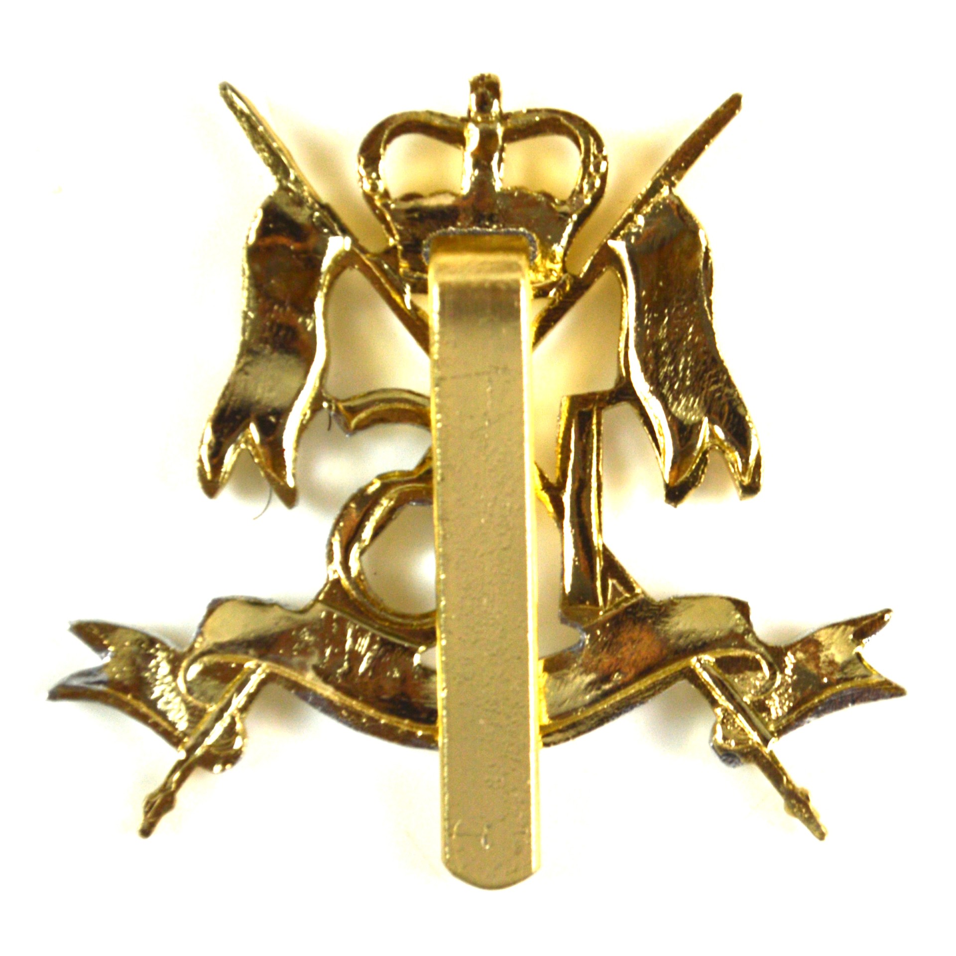 16th/5th The Queen’s Royal Lancers anodised cap badge of the pattern worn between 1953 and 1993 by the 16th/5th The Queen’s Royal Lancers of the British Army. This British Army cavalry cap badge displays the recognised insignia of the regiment in clear relief, incorporating the crossed lances and number “16” bones device above a scroll bearing the regimental title “The Queen’s Lancers”. The badge is surmounted by the Queen’s Crown, reflecting the pattern authorised during the reign of Queen Elizabeth II.