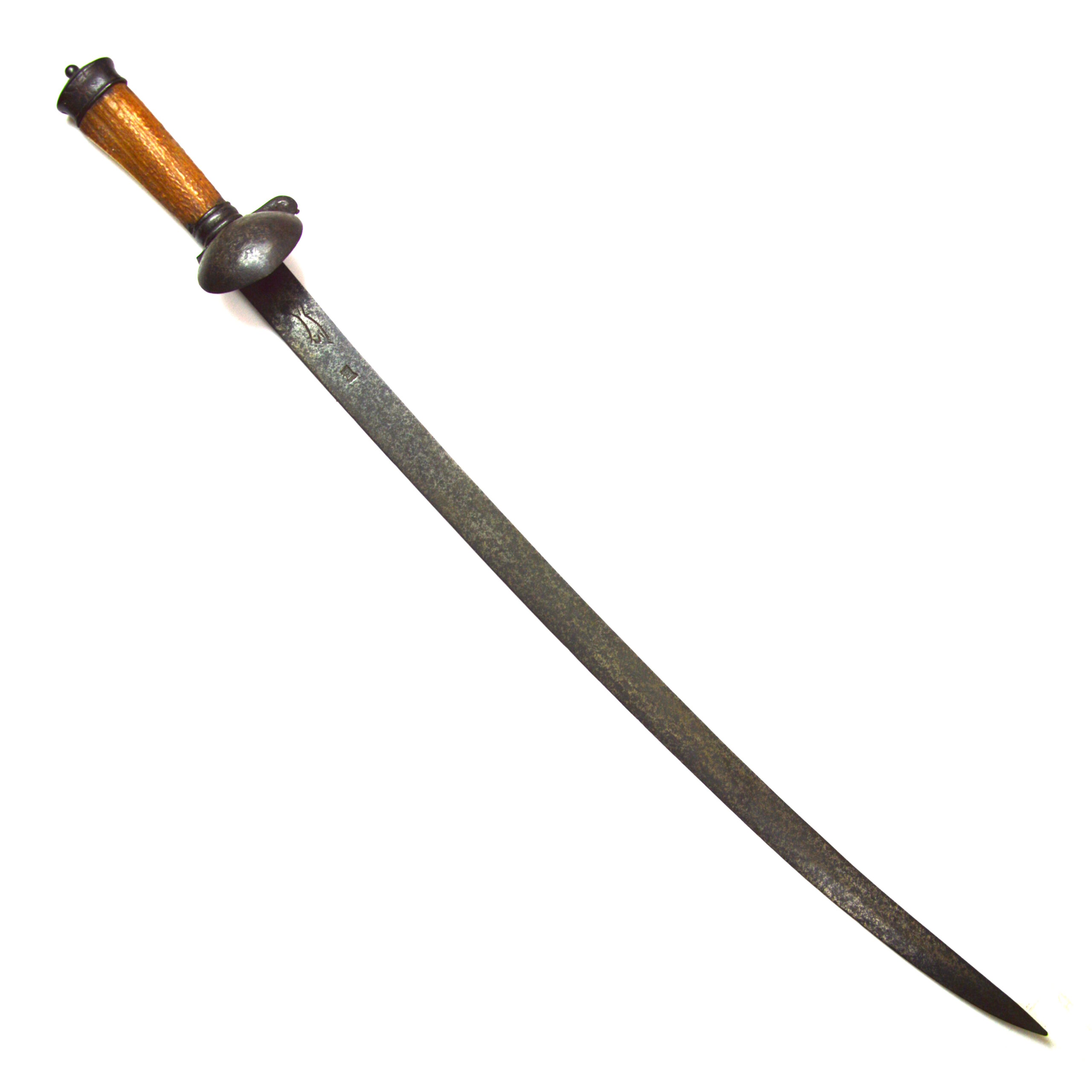 Fair to good antique condition, with significant age-related wear consistent with a 17th-century piece. The blade shows patina, surface marks, and light pitting, with a slightly bent tip. The hilt is in excellent condition; however, the knuckle bow has broken off. An ideal restoration project.