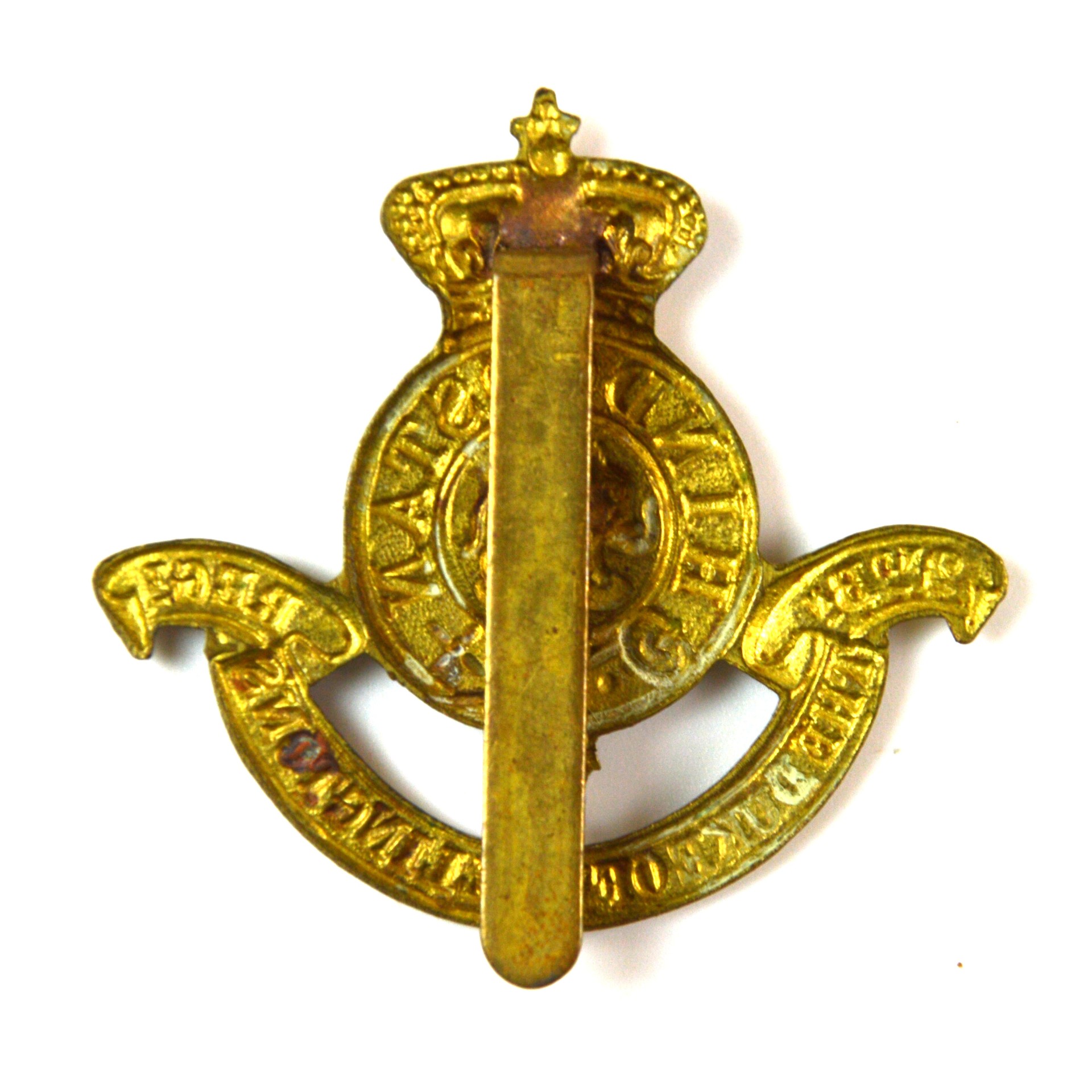 Restrike cap badge or band badge of the 2nd Battalion, Duke of Wellington’s Regiment (The West Riding). The badge follows the long-established regimental design incorporating the Indian elephant at the centre, and the battle honour “HINDOOSTAN” in the surrounding circlet, with the title “2ND BN, THE DUKE OF WELLINGTON’S REGT”. Surmounted by a crown in keeping with the original late Victorian pattern.