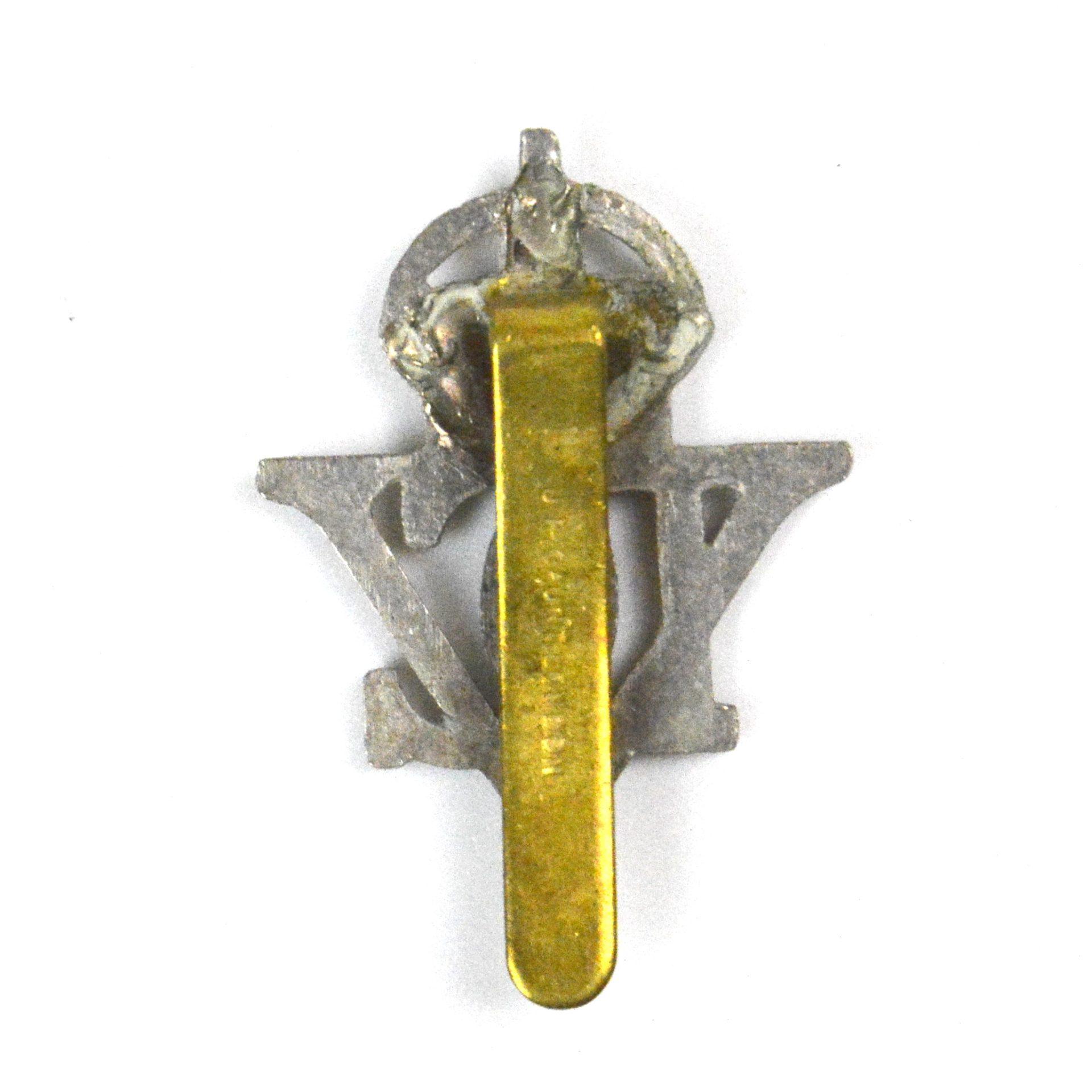5th Dragoon Guards King’s Crown Cap Badge, White Metal Restrike in with hook slider