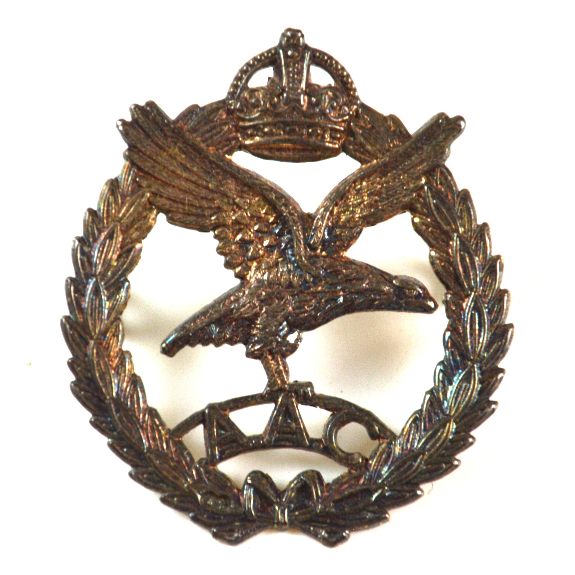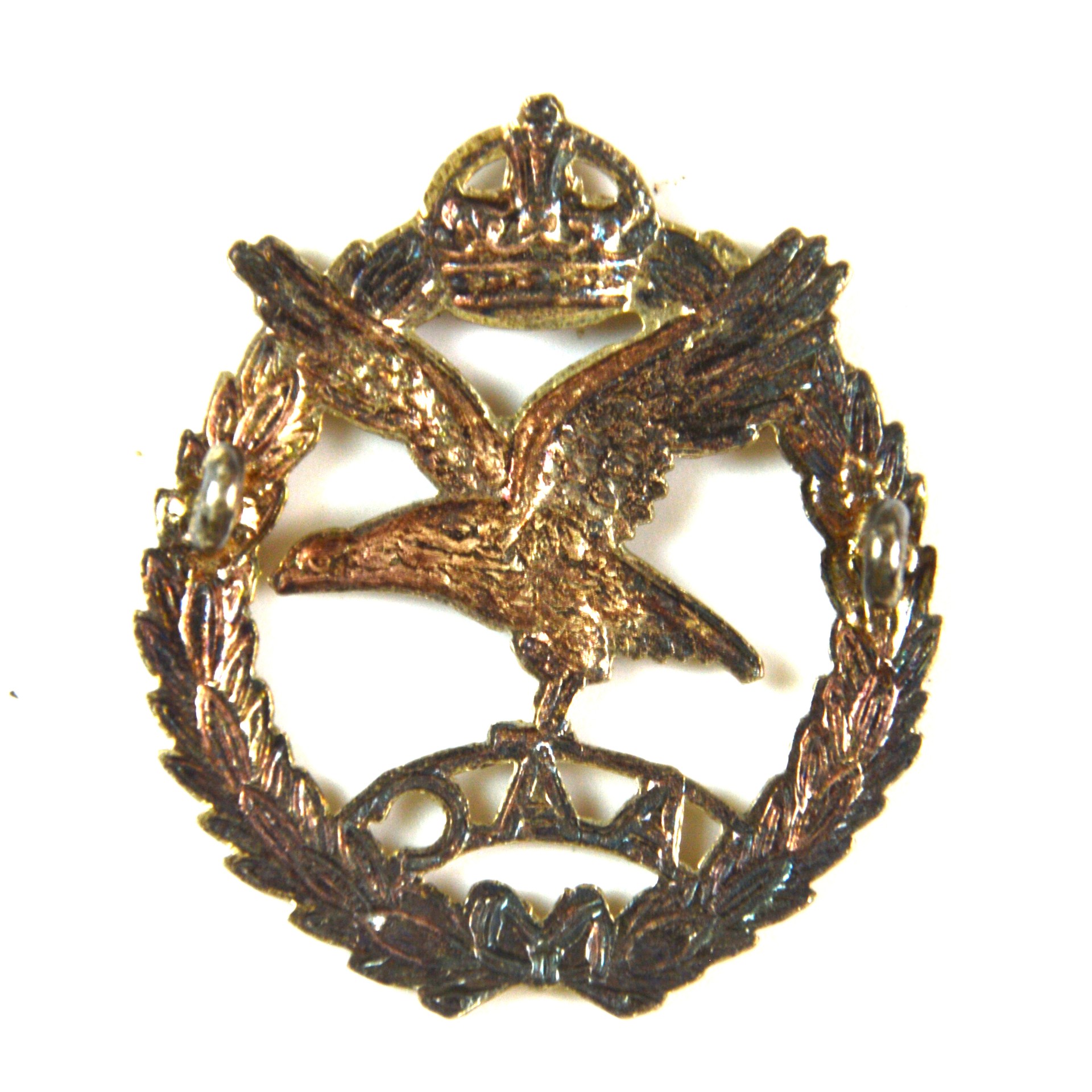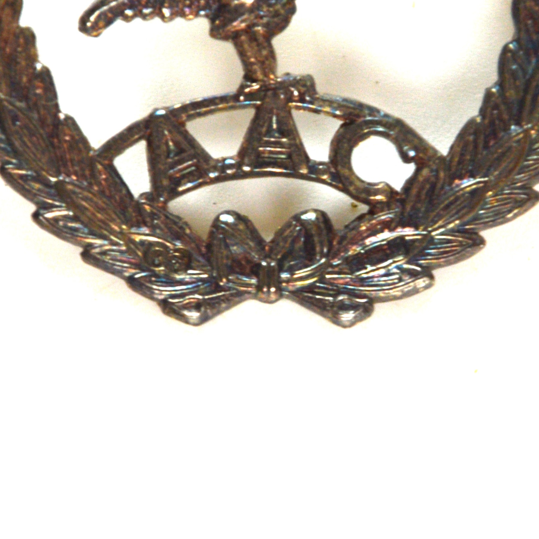 An excellent example of the Army Air Corps (AAC) officer’s cap badge, produced in hallmarked silver by the Assay office of Birmingham and bearing a 1990 date mark “Q”. Although the original pattern was introduced in 1942 and used until 1949, high-quality silver versions such as this continued to be manufactured privately for wear on No.1 Dress or for commemorative and regimental purposes.