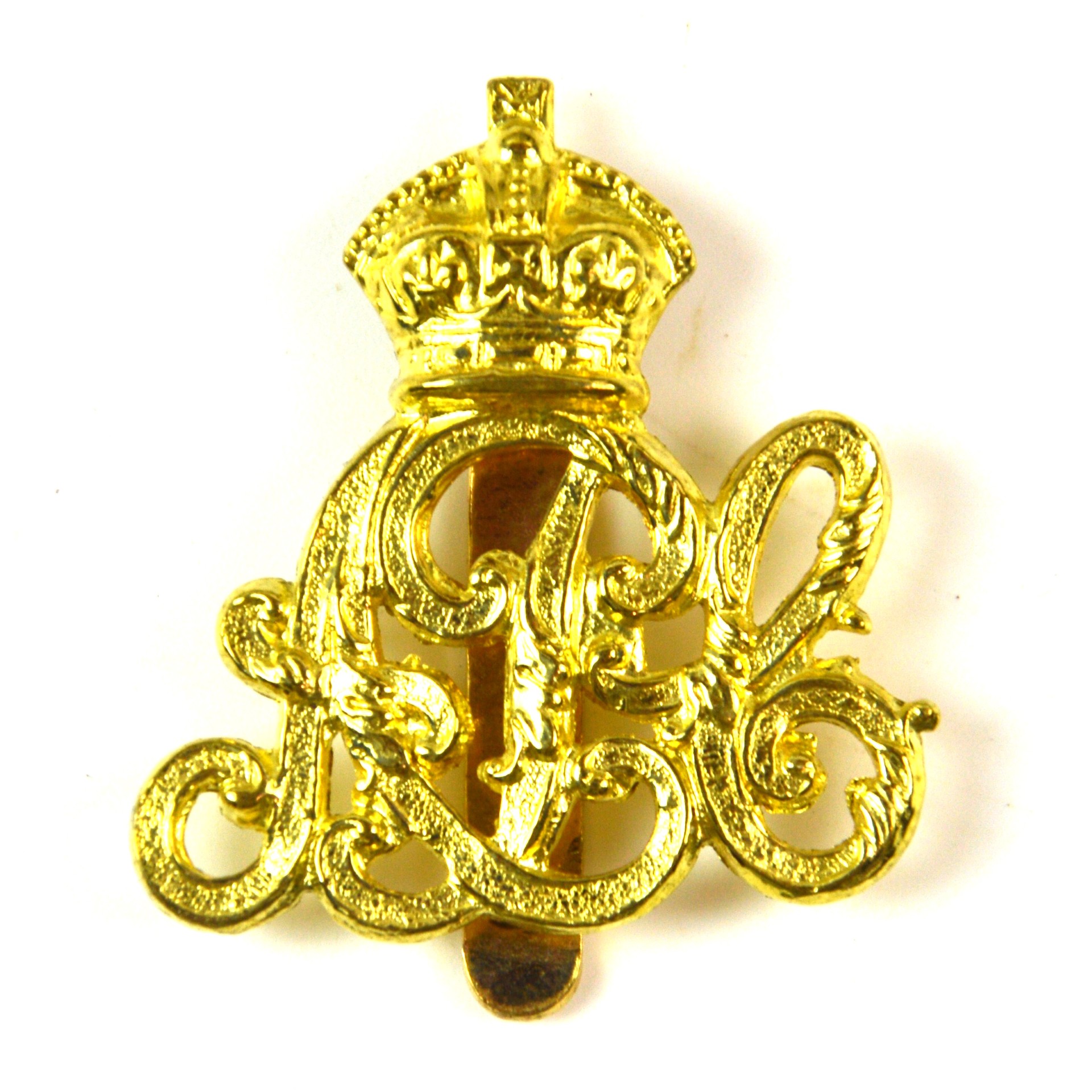 Manufactured in brass as a single-metal construction consistent with British Army other ranks’ corps cap badge production of the Edwardian and First World War period, this restrike example provides a sharply defined representation of the Army Pay Corps headdress badge as worn from 1902 to 1920. Army Pay Corps King’s Crown cap badges are collected as examples of First World War British Army corps militaria, pre-Royal headdress insignia of the army’s pay and financial administration services, and uniform hardware of the wartime British Army.