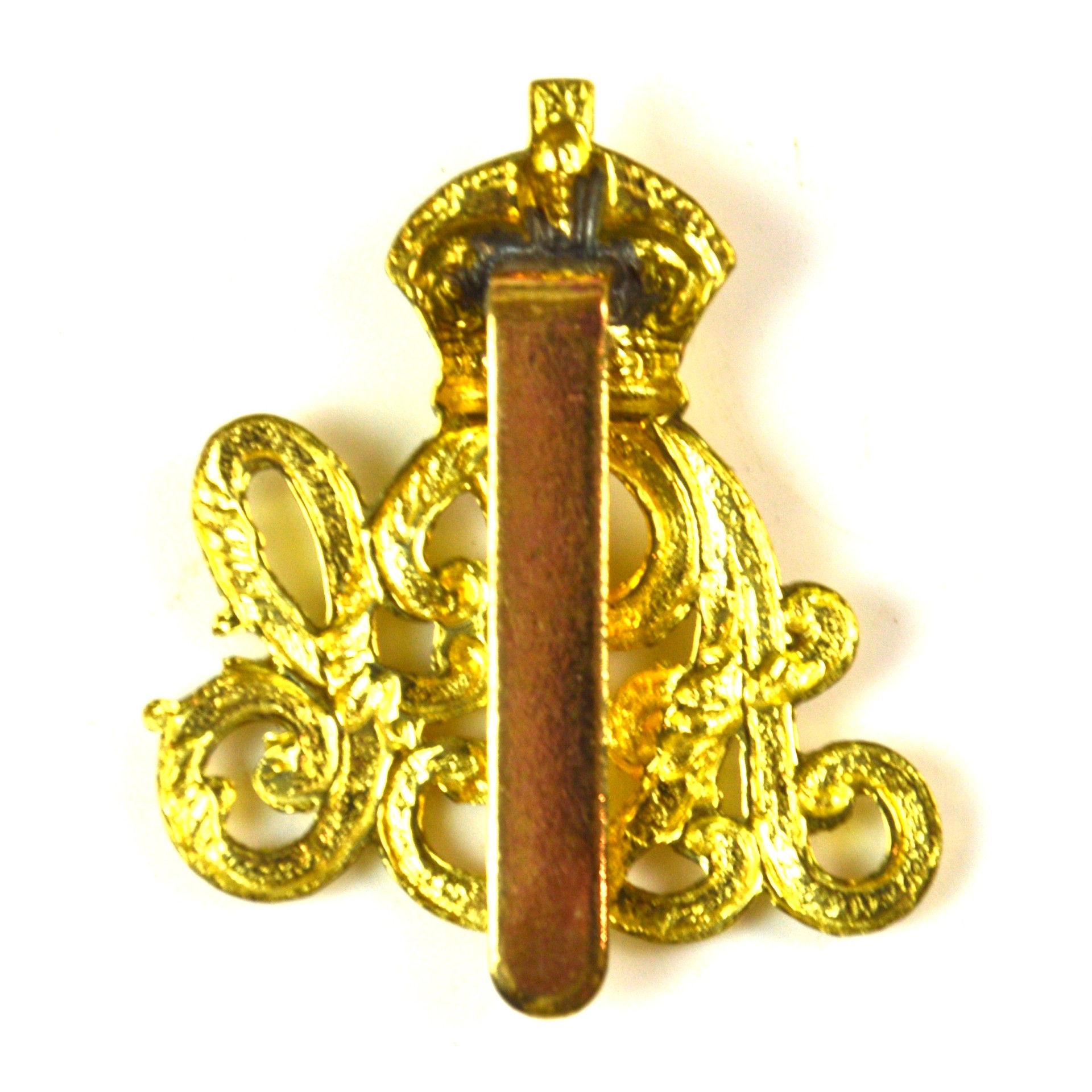 The Army Pay Corps was formed in 1893 as an other ranks’ corps to support the work of the Army Pay Department, an officer-only establishment that had been constituted as an autonomous branch in 1878, itself descended from the Pay Sub-Department of the Control Department formed in 1870. Before 1893, the administration of army pay at the unit level rested with regimental paymasters and their clerks, drawn from within the regiment rather than from a specialist corps, producing inconsistencies in the keeping of accounts and the disbursement of pay across the expanding British Army of the late Victorian period. The Army Pay Corps was accordingly established to provide a pool of trained other ranks clerks and pay staff deployable across all arms and corps of the army. The corps served throughout the South African War of 1899–1902 and subsequently expanded enormously during the First World War to administer the pay of an army that grew from approximately 250,000 men in 1914 to over five million by 1918, a logistical undertaking of extraordinary scale that the corps fulfilled with sufficient distinction to earn the “Royal” prefix granted to the amalgamated Royal Army Pay Corps in 1920. The King’s Crown over monogram badge in this form was worn across the entire First World War period, making it the badge most closely associated with the corps’ wartime service.