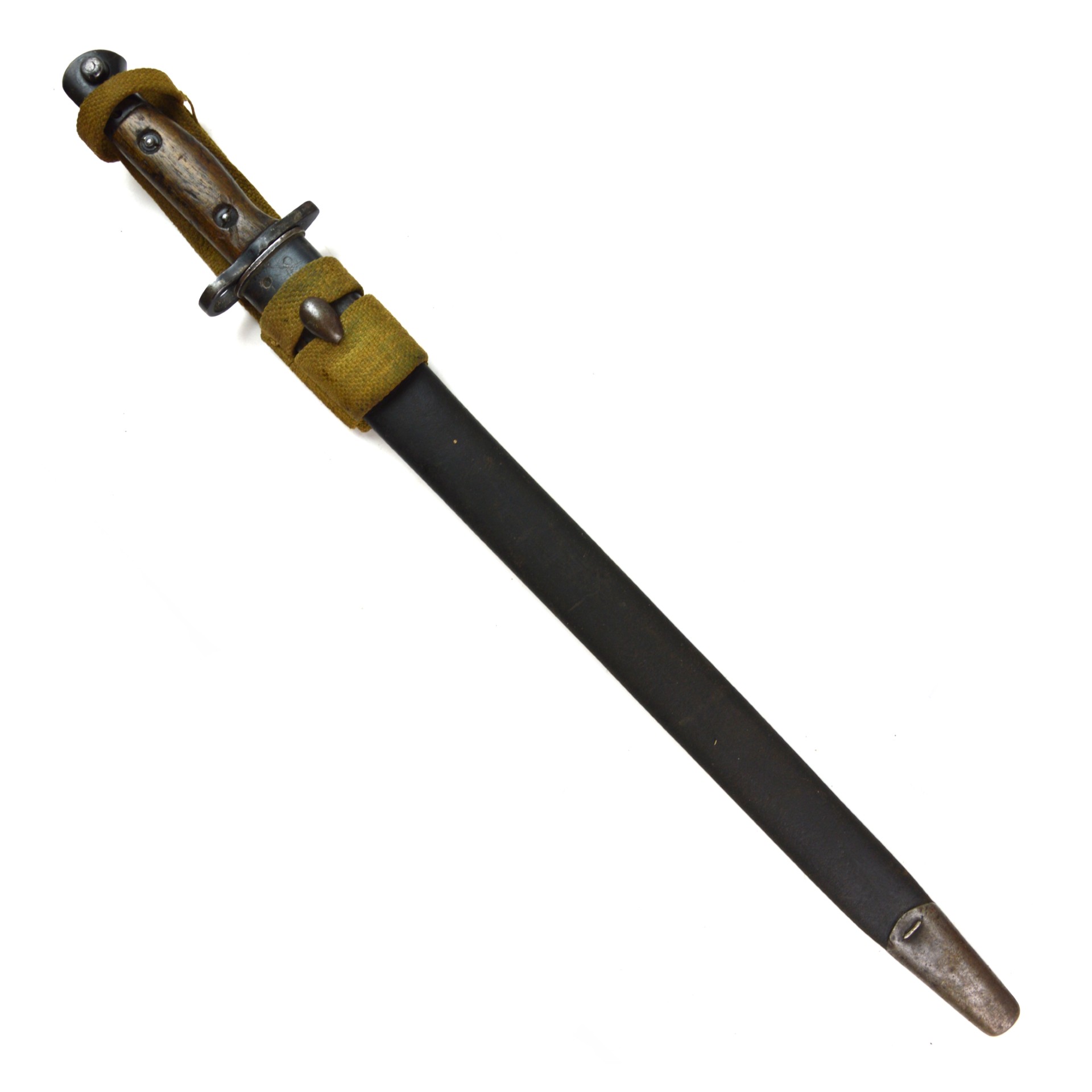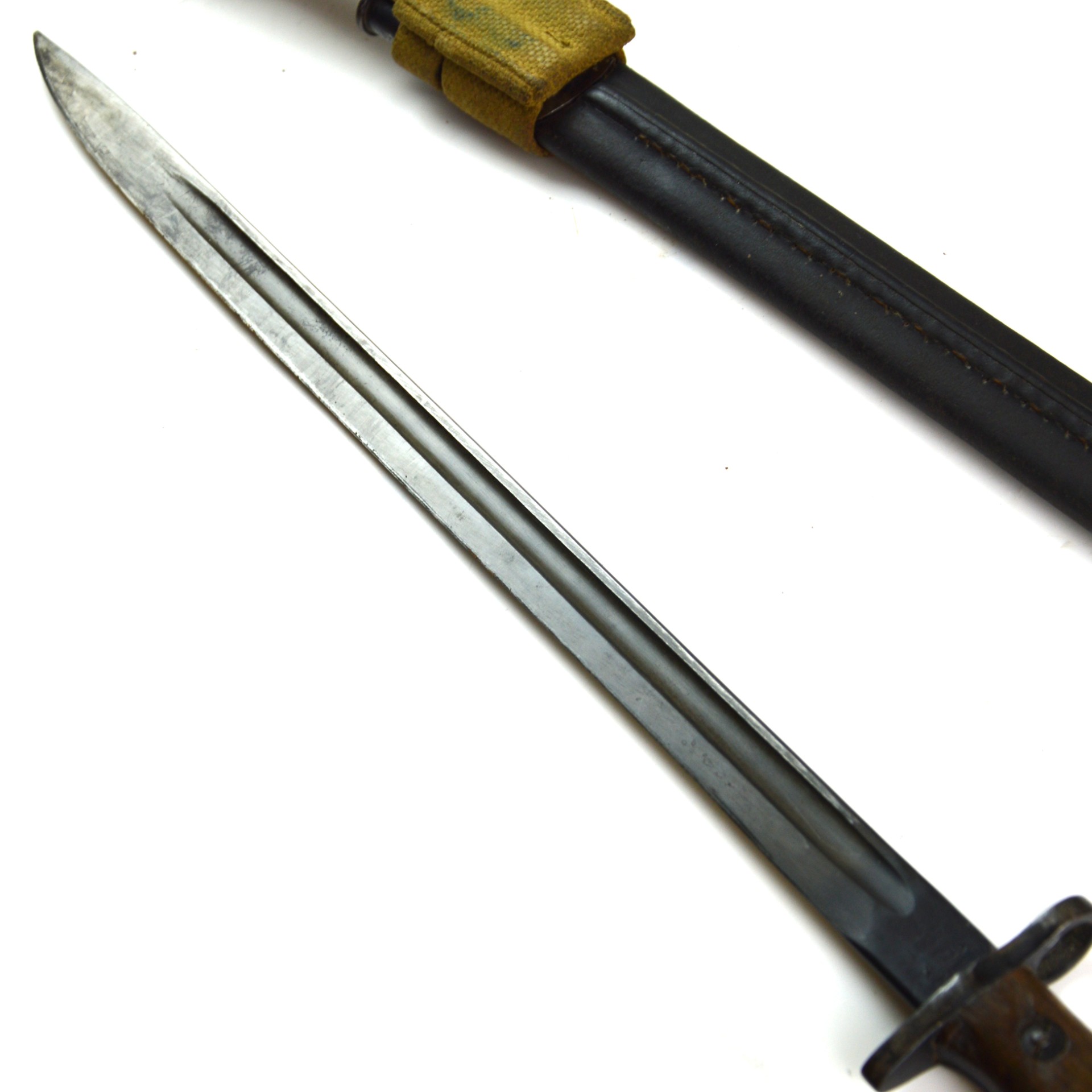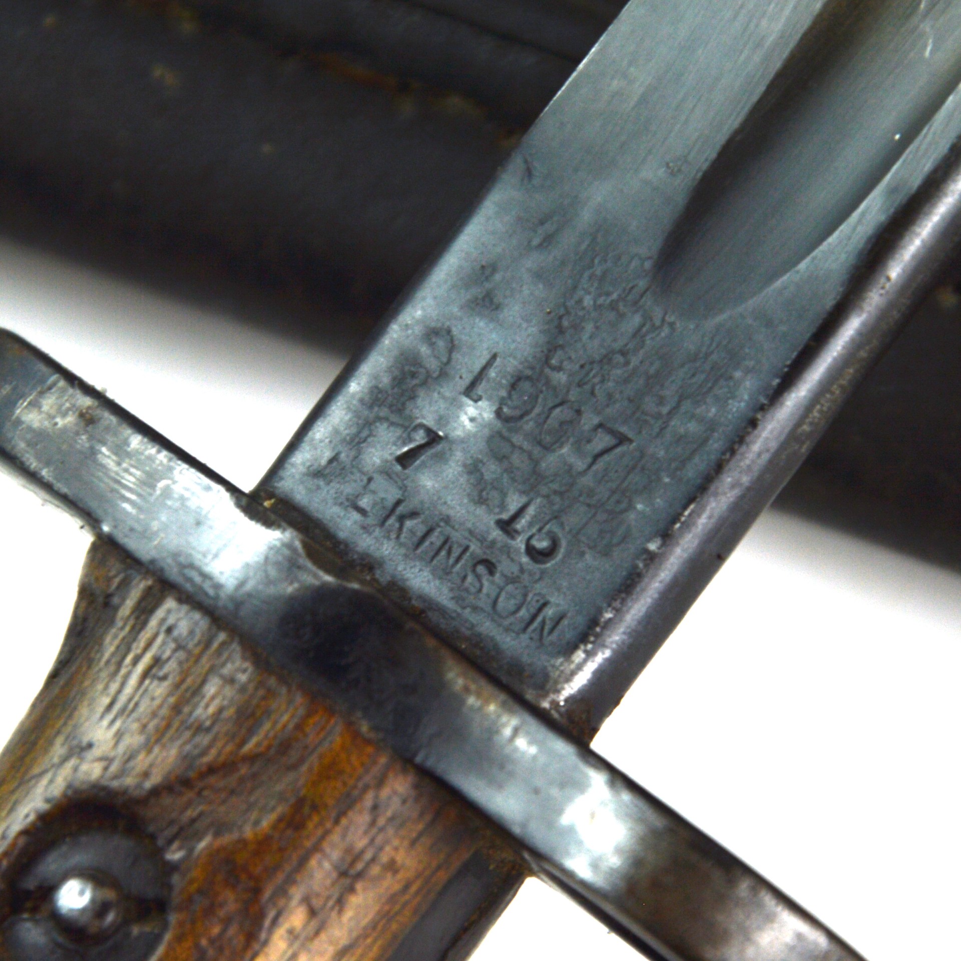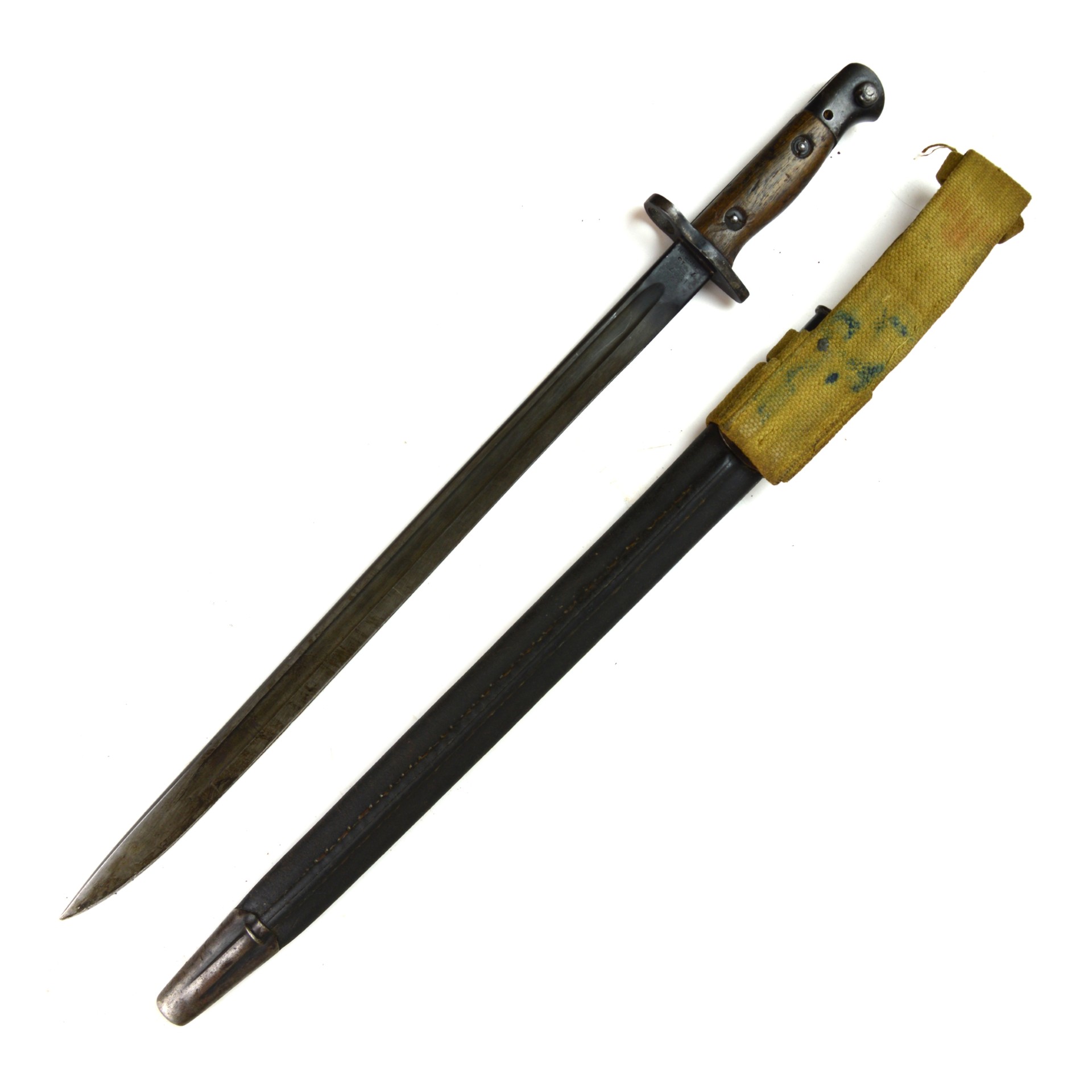An original British 1907 Pattern bayonet manufactured by Wilkinson in July 1915. This pattern was the standard bayonet for the Short Magazine Lee-Enfield (SMLE) rifle throughout the First World War. Produced by several major makers, the Wilkinson Sword Company was one of the key wartime contractors, supplying high-quality equipment to the British Army.