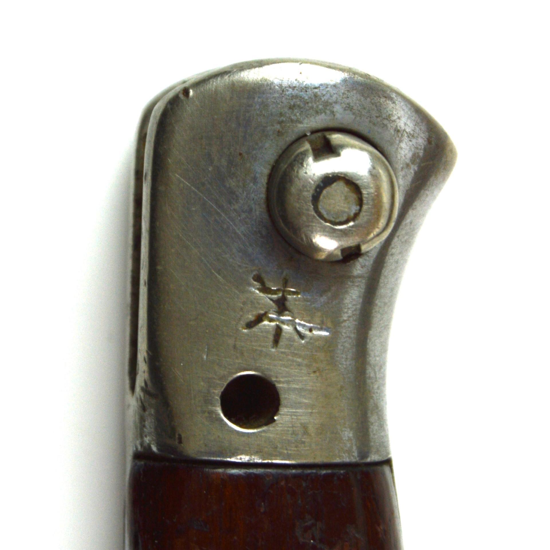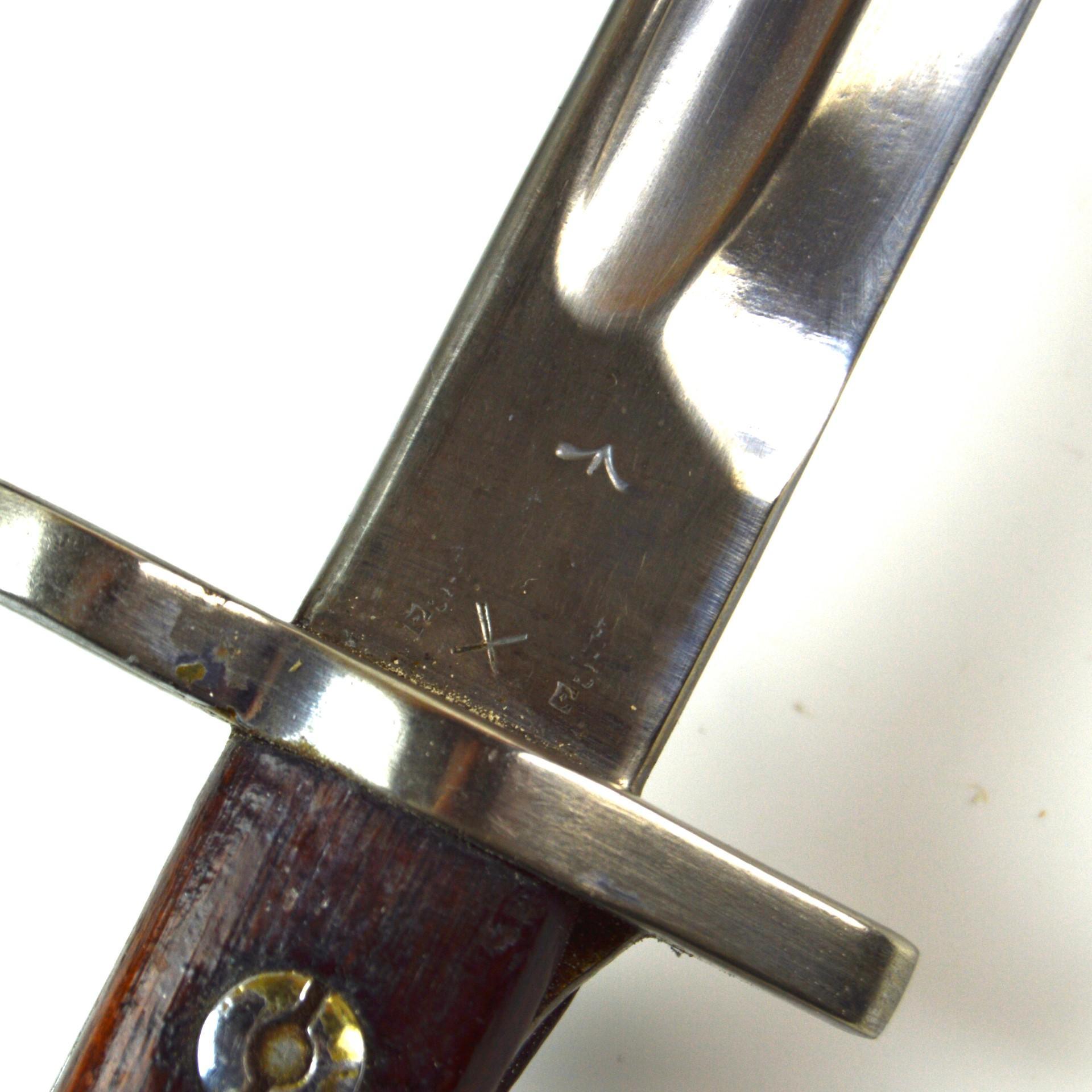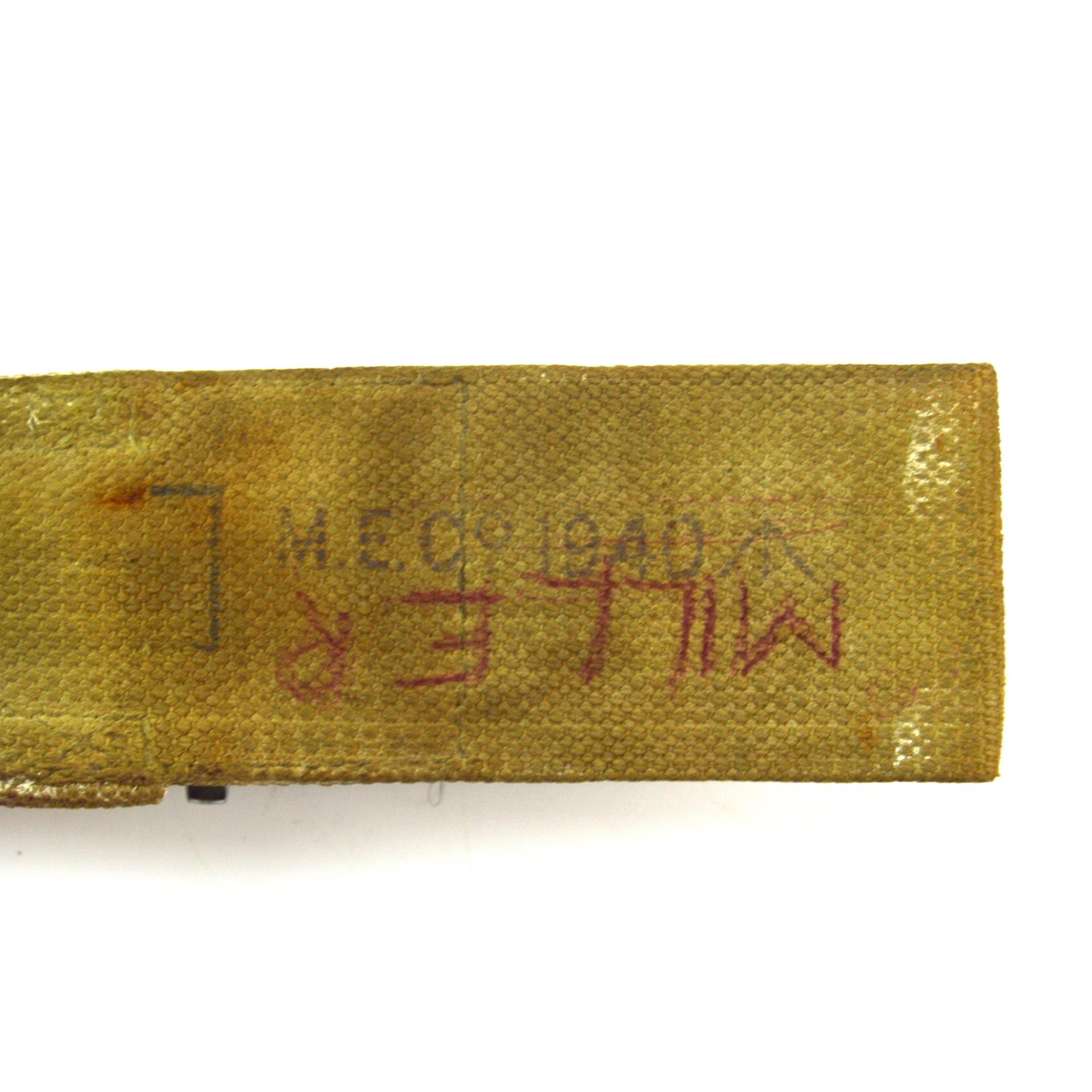 Marked on the ricasso “(Tudor crown) 1907, 1(either January but may have been 11 or 12 for November or December) 18, Chapman” on one side, reverse marked with various inspectors marks. In a 1908 Pattern frog marked “M.E. Co. 1940” (Mills Equipment Co.) and inscribed “MILLER”. Marked on the pommel “RAF. 1, 4692”, tang stamped “178” on the scabbard’s throat “RAF, 525”.
