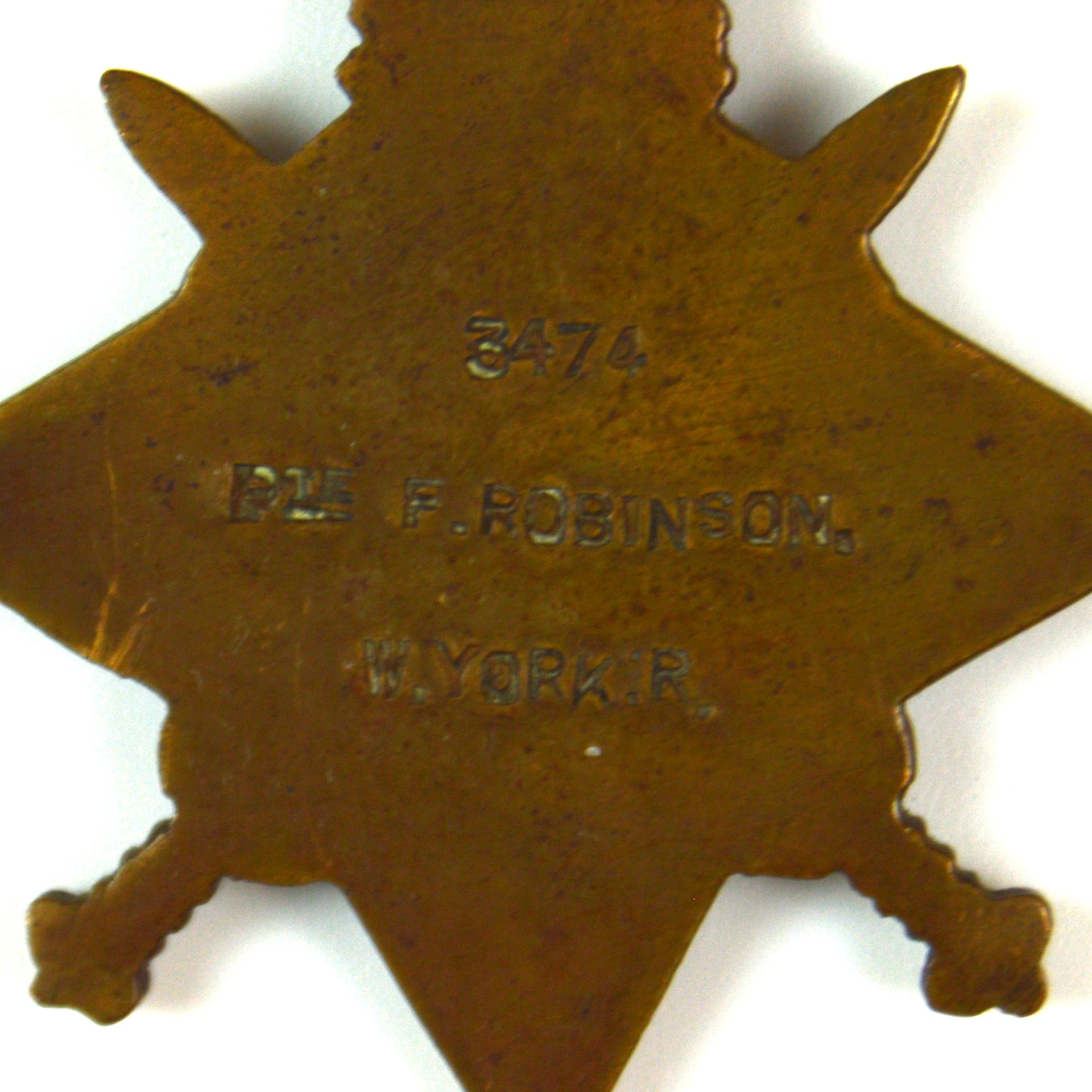 Correctly impressed: 3474 PTE. F. ROBINSON. W. YORK. R.