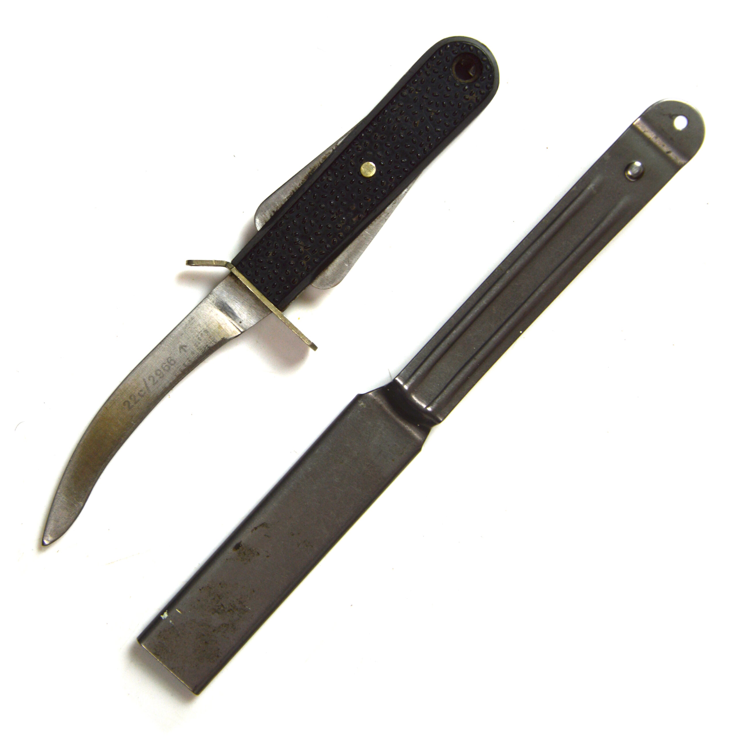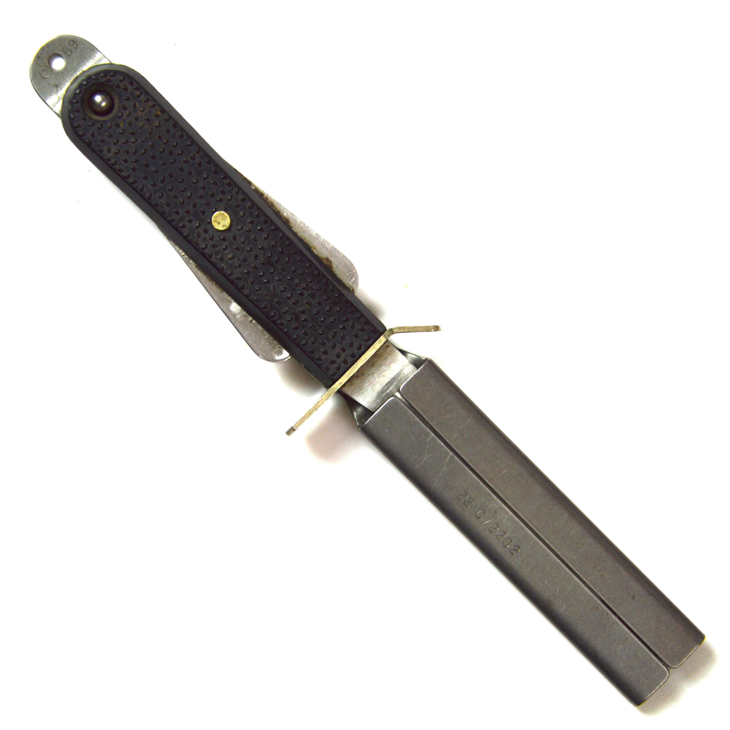 Manufactured using utilitarian materials and construction methods, the Mk. III escape knife represents post-war developments in military survival equipment. Items of this type are collected within British militaria, particularly among those interested in aviation history, survival gear, and Cold War-era equipment.