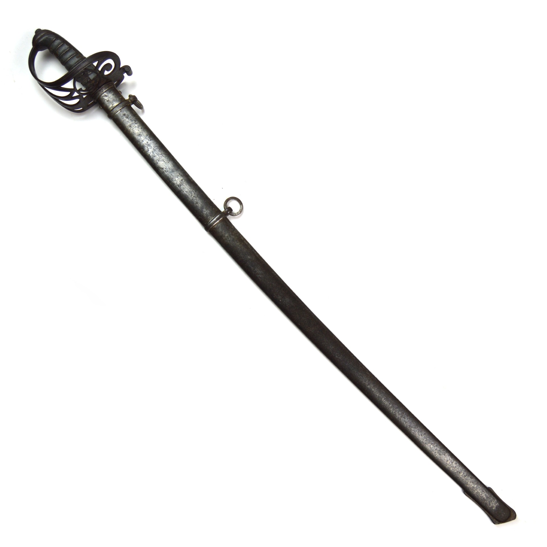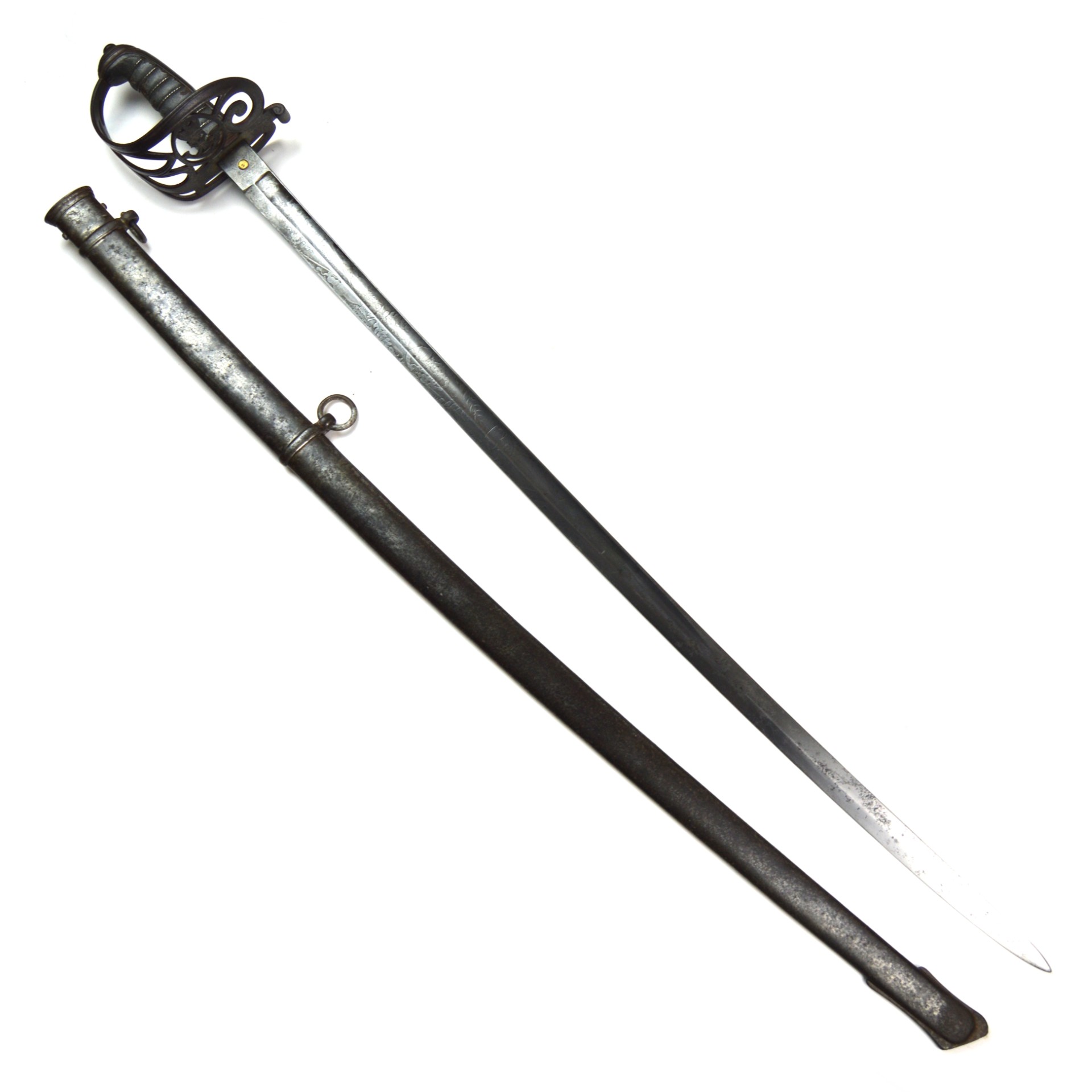 The 1845 pattern blade measures approximately 82.5cm, with a slightly curved profile and spear point, suited for both cutting and thrusting – a design carried through much of the Victorian era. Complete with its original steel scabbard featuring twin hanging rings, this sword would have been carried by an officer during Britain’s major 19th-century overseas campaigns.