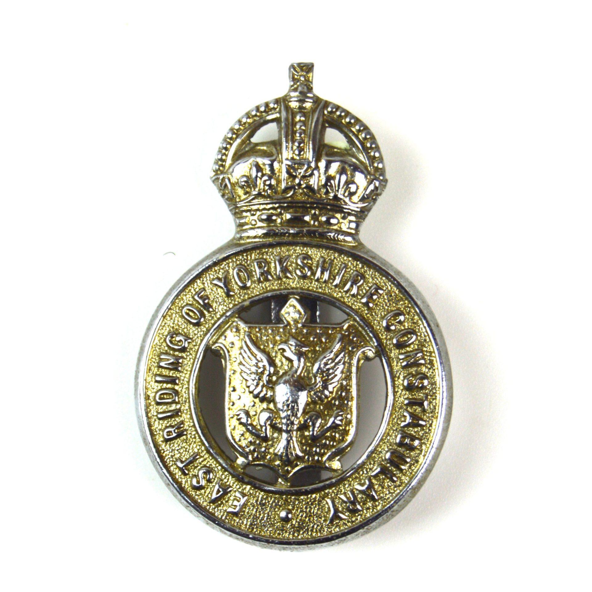East Riding of Yorkshire Constabulary Nickel-Plated Cap Badge, King’s Crown. A genuine police badge for the insignia collector.