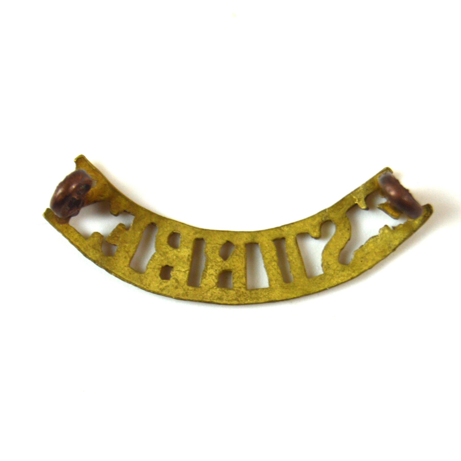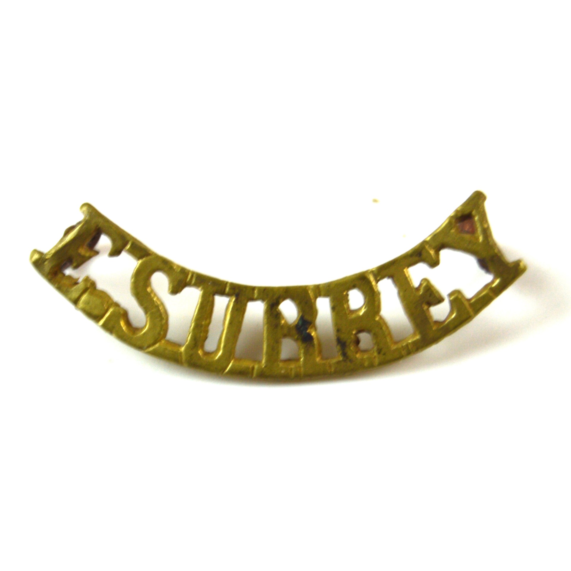 East Surrey (E. SURREY) (1902-1959 Pattern) Officer’s Shoulder Title. Curved brass shoulder title with east-west-eyed lug fixings