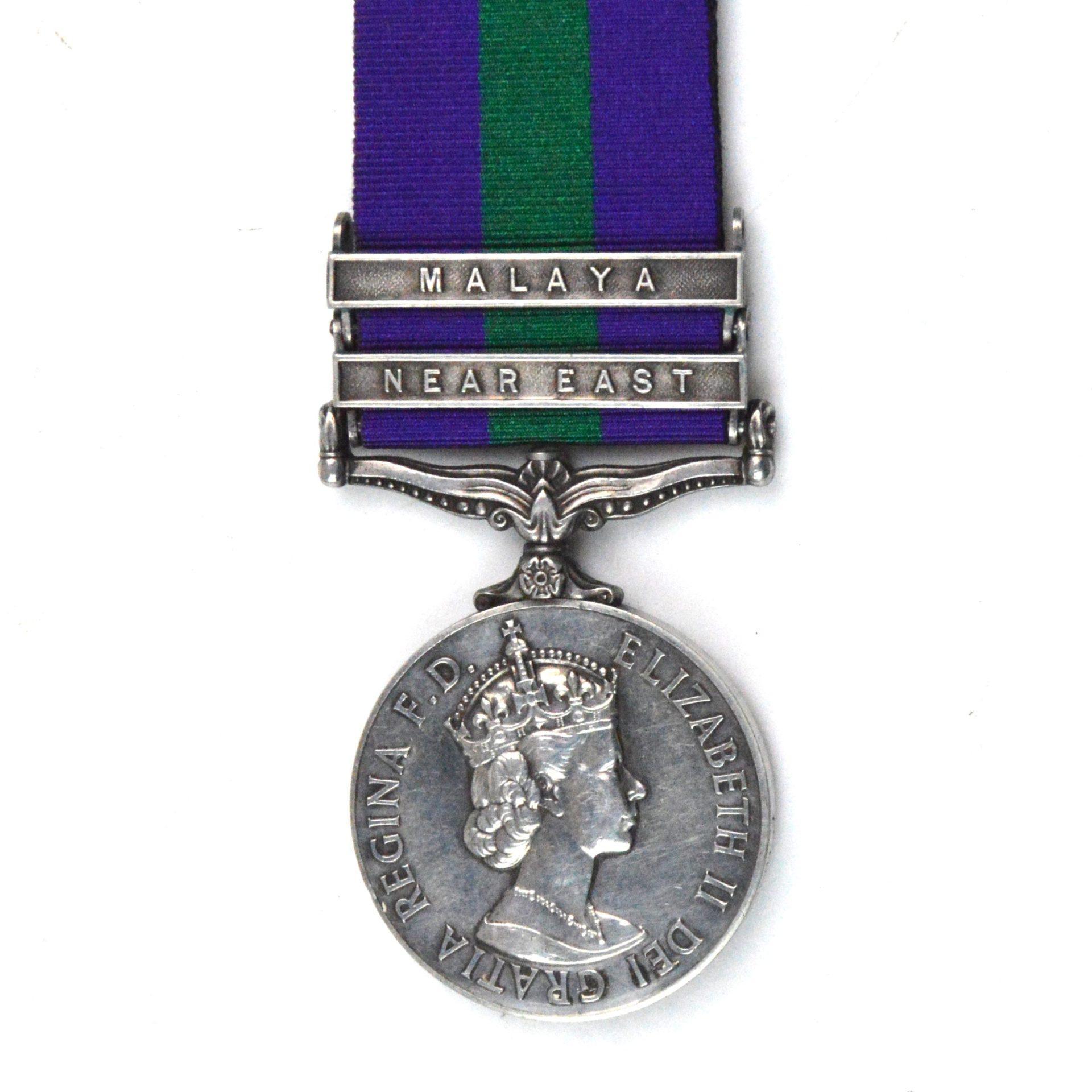 General Service Medal 1918-62, Malaya and Near East Clasps, Corporal D. H. Beales (Replacement)Availability: Only 1 left in stock