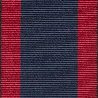 Dark blue central band bordered by narrow crimson.