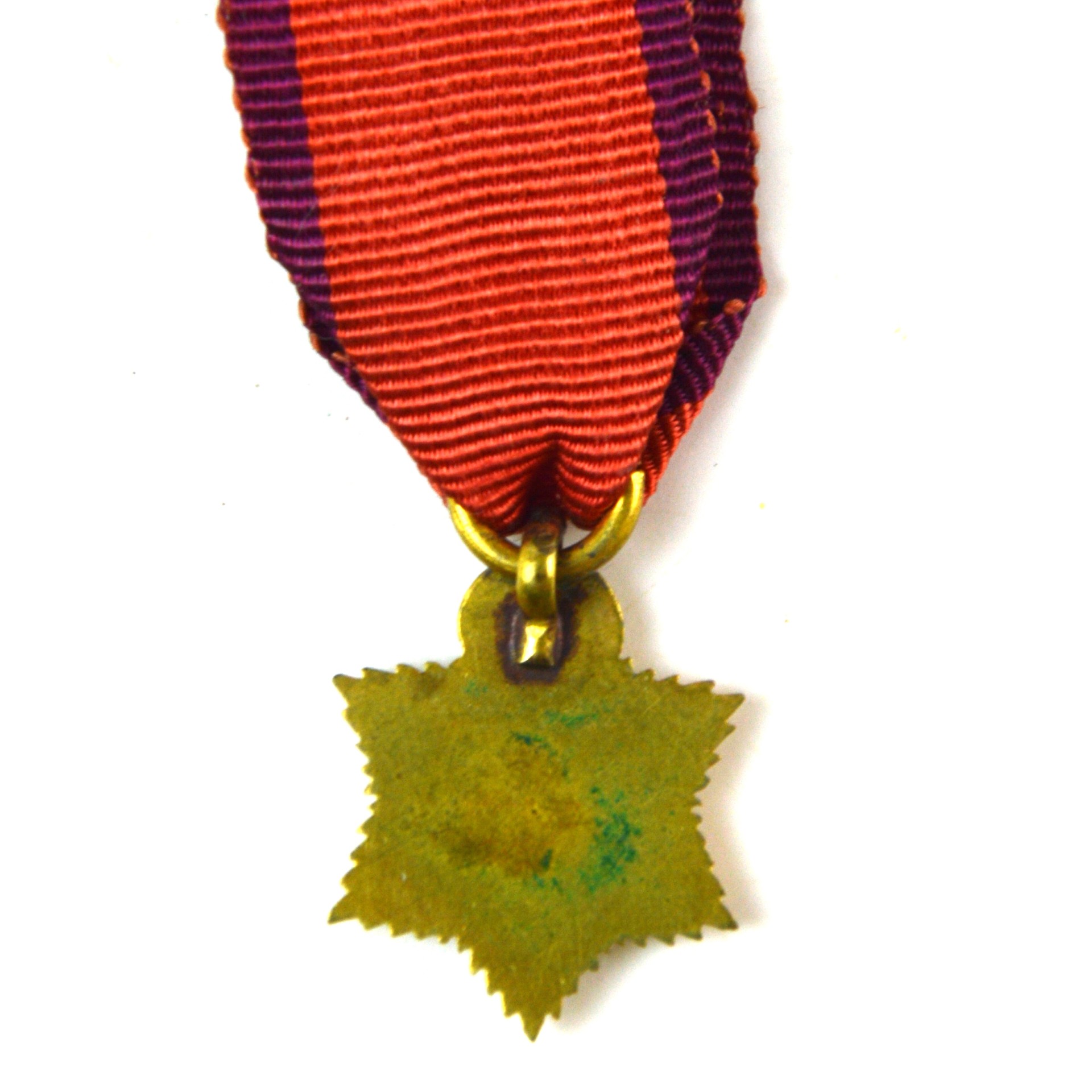 A contemporary miniature of the India Title Badge 2nd Class, specifically the South Indian Hindu Issue, awarded with the title “Rao Bahadur” during the reign of King George V (1910–1936). Miniatures such as this were privately produced for mess dress, display, or family collections, faithfully following the full-size badge design.