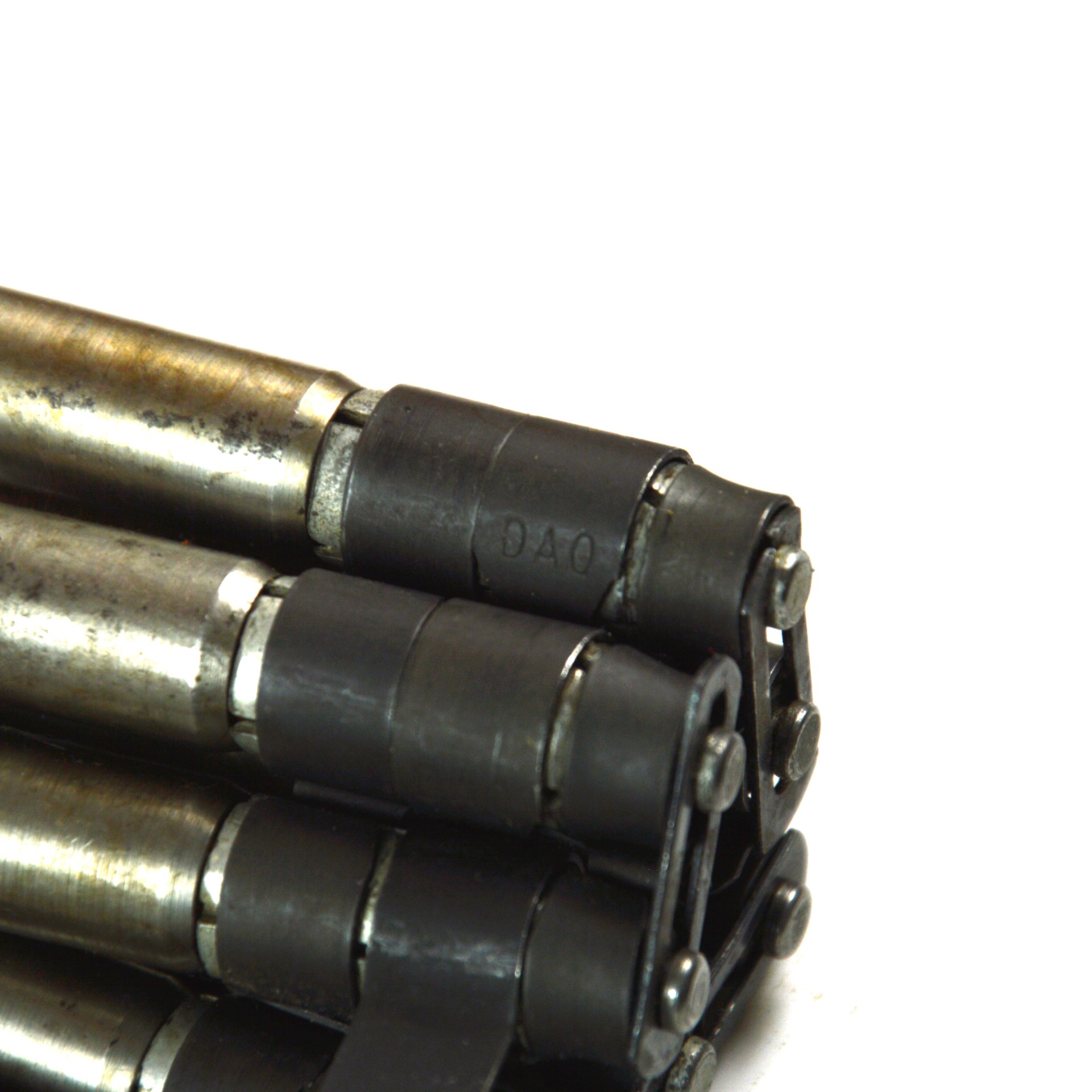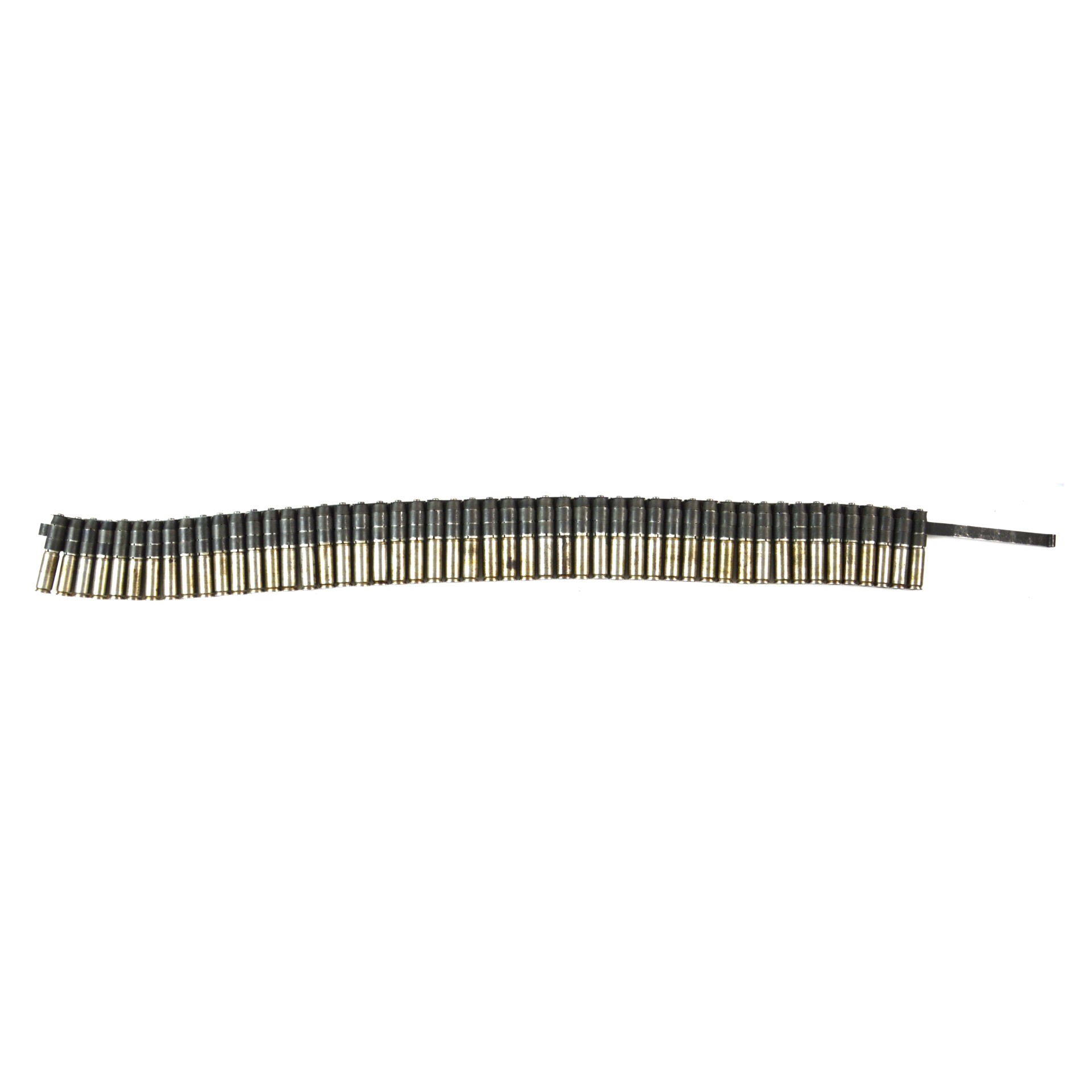 The links are manufactured by DAO (Dominion Co. of Canada), designed to simulate standard service belts while accommodating smaller-calibre rounds. Inert training belts are identifiable by the absence of live components and are intended solely for demonstration, display, or instructional use.