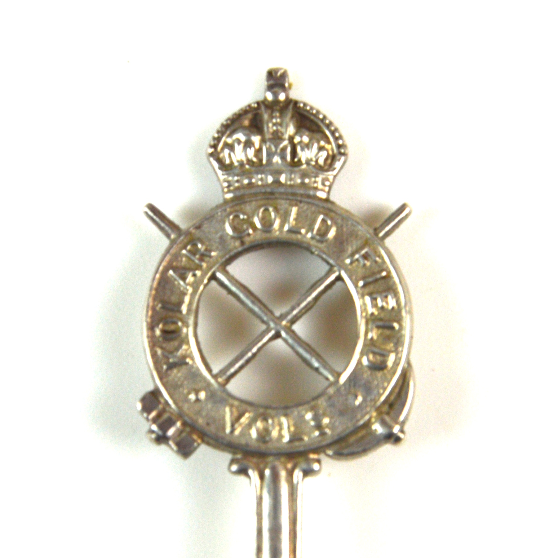 The Kolar Gold Fields, located in Kolar Gold Fields, were a major centre of gold mining under British colonial administration. Volunteer units such as the Kolar Gold Field Volunteers were raised for local defence and support roles, reflecting the wider structure of colonial auxiliary forces. Commemorative and presentation items such as this teaspoonwere often produced to mark service, membership, or association with such units.