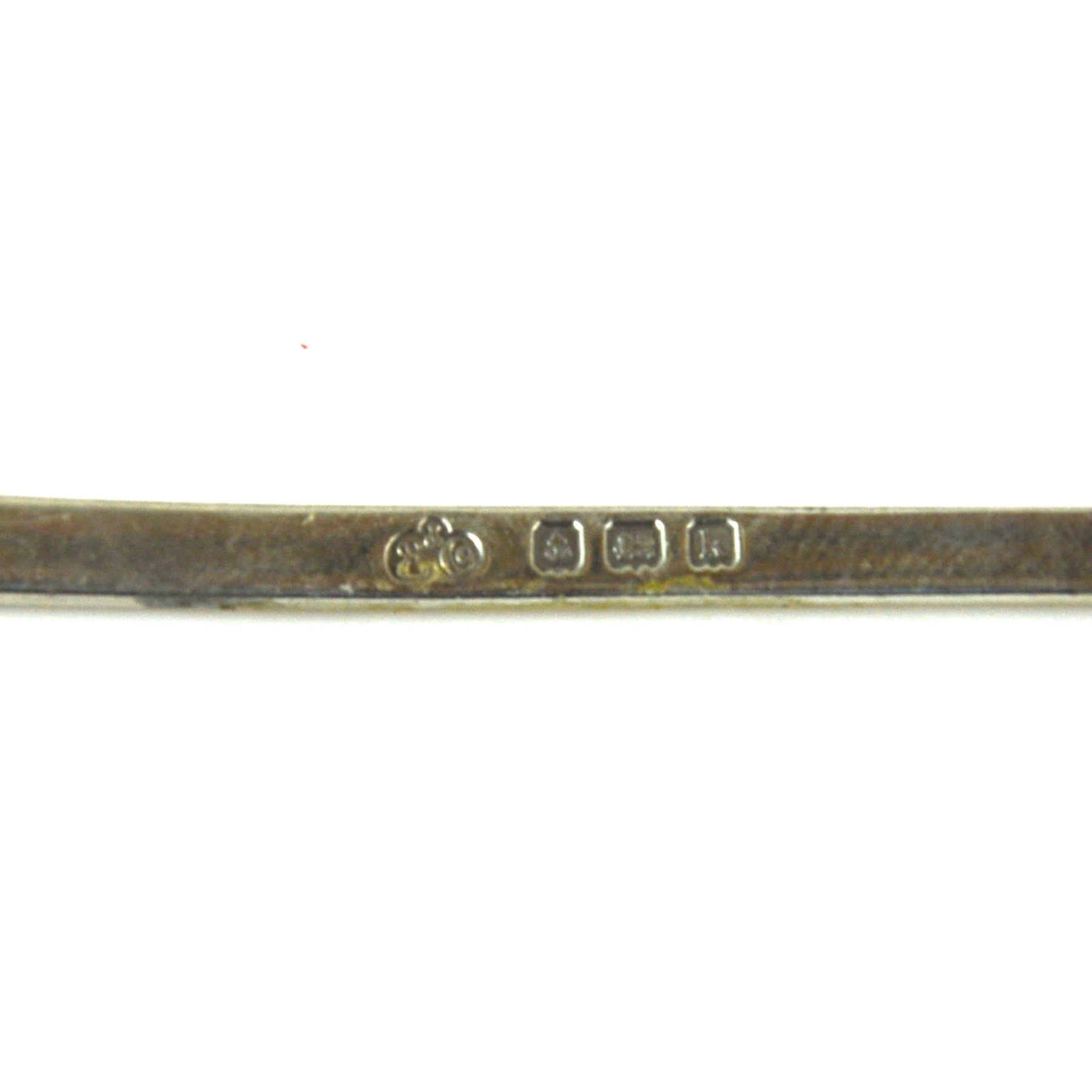 Kolar Gold Field Volunteers commemorative teaspoon, hallmarked at Birmingham in 1910 and manufactured by Elkington & Co, one of the foremost English silversmithing firms of the nineteenth and early twentieth centuries. This finely crafted silver teaspoon features a decorative handle incorporating regimental motifs referencing the Kolar Gold Field Volunteers, with a shaped bowl typical of Edwardian or Georgian silverware.