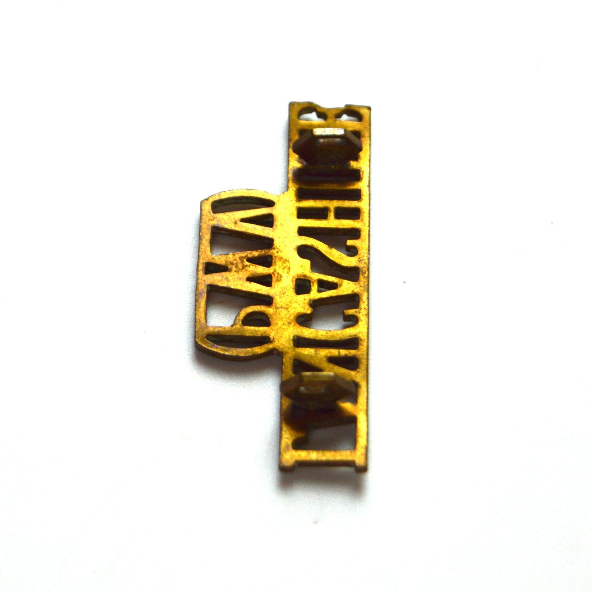 Lancashire Regiment (Prince of Wales’s Volunteers) (Lancashire PWV) Shoulder Title, Stamped Lugs on the reverse