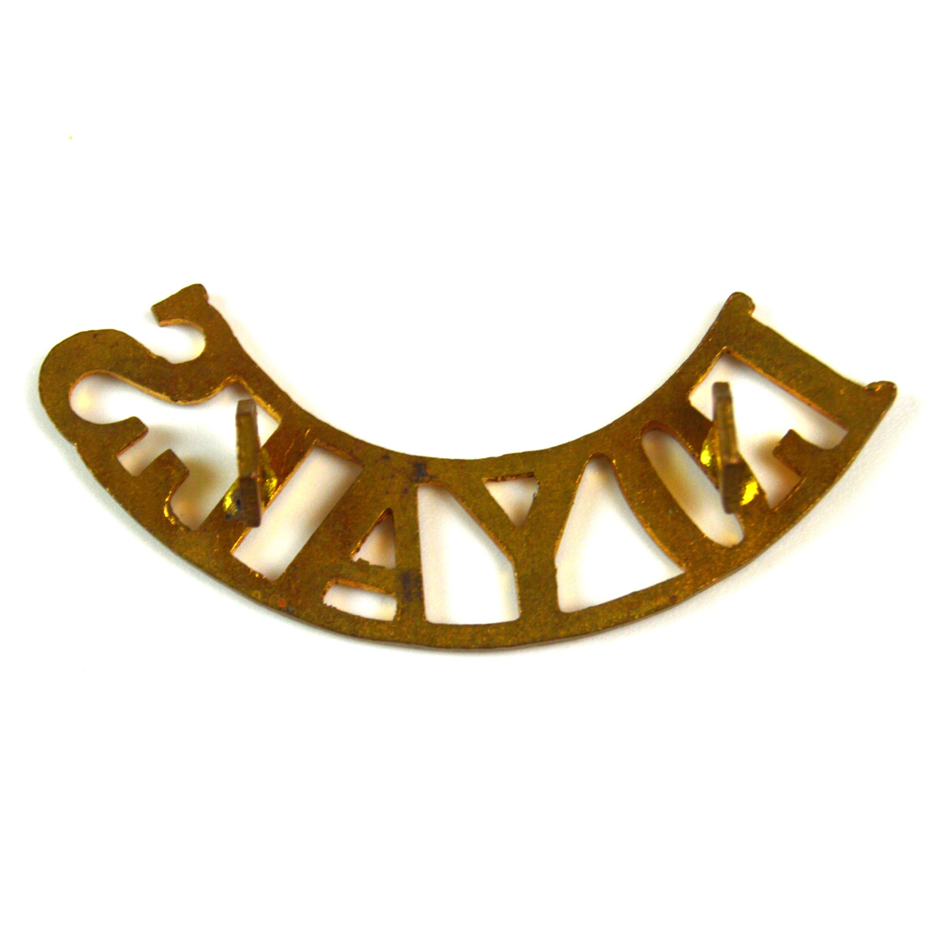 Original Loyal Regiment (North Lancashire) brass shoulder title. This pattern was worn from the early interwar period through WWII and into the 1970s