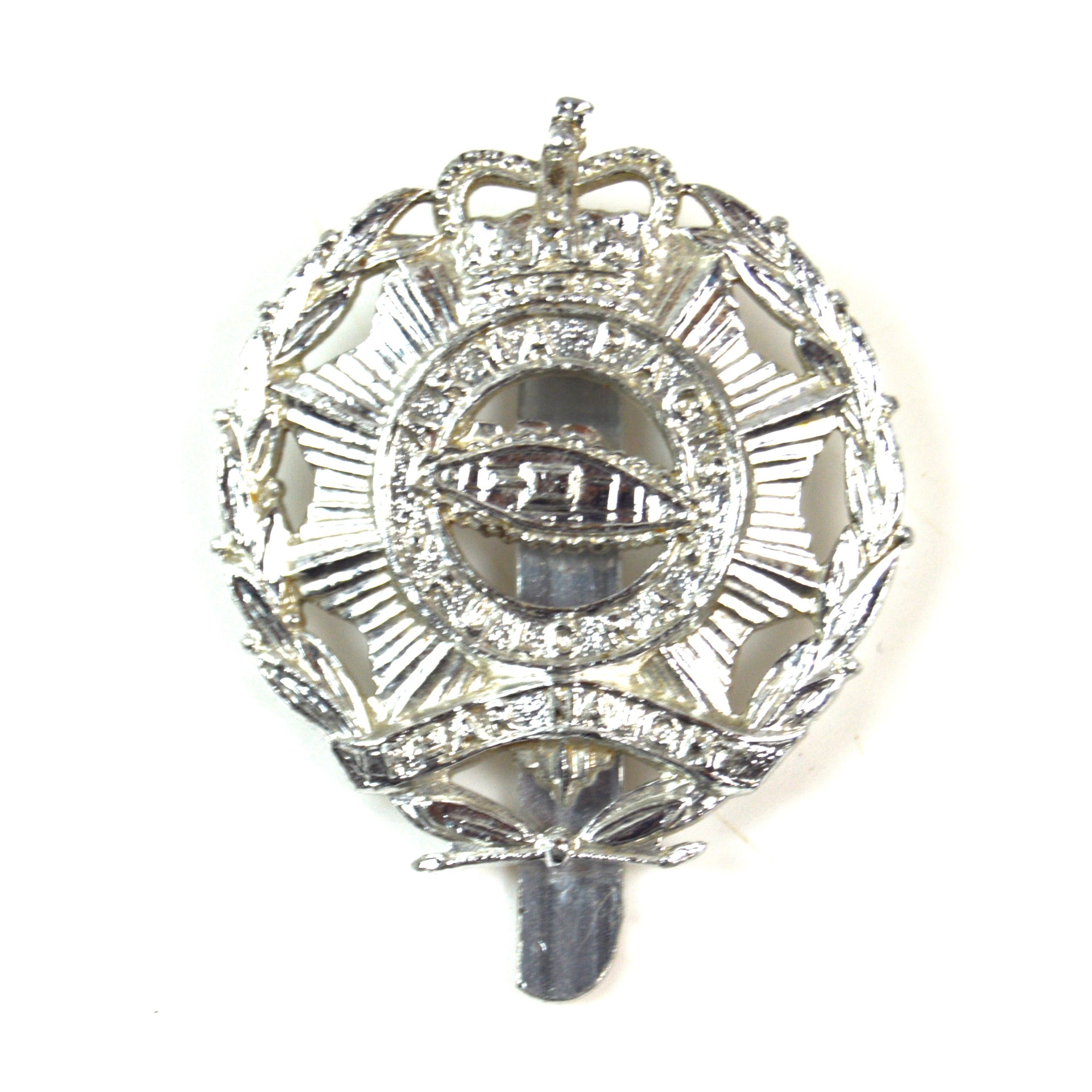 North Somerset and Bristol Yeomanry (1955-c.1971 Pattern) Anodised Cap Badge. Staybrite aluminium with a hook slider fitting on the reverse