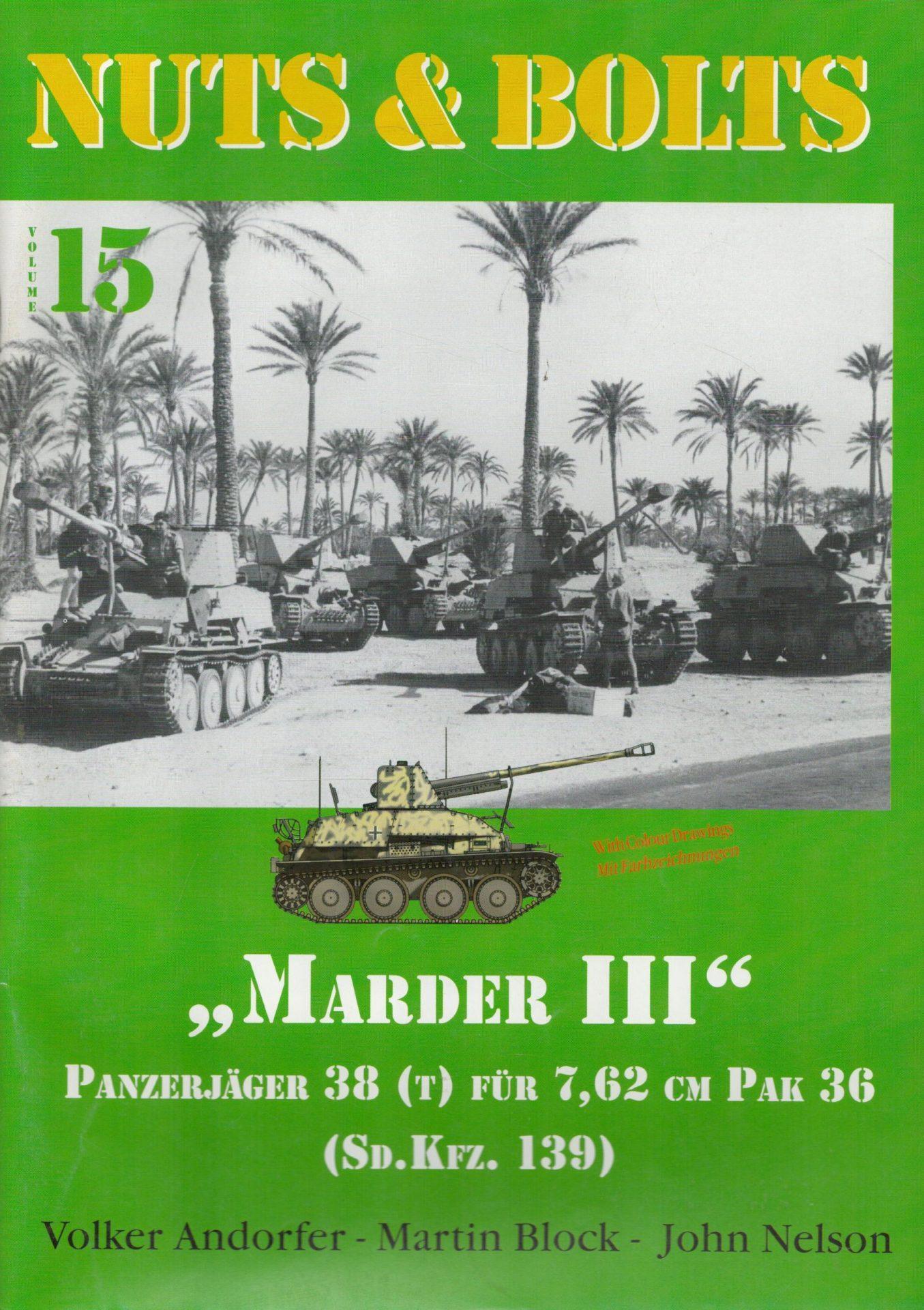 A military history title covering Nuts and Bolts 15. Marder III. Panzerjager 38 (T) fur 7.65cm PaK 36 (Sd. Kfz. 139). Of interest to the military historian.