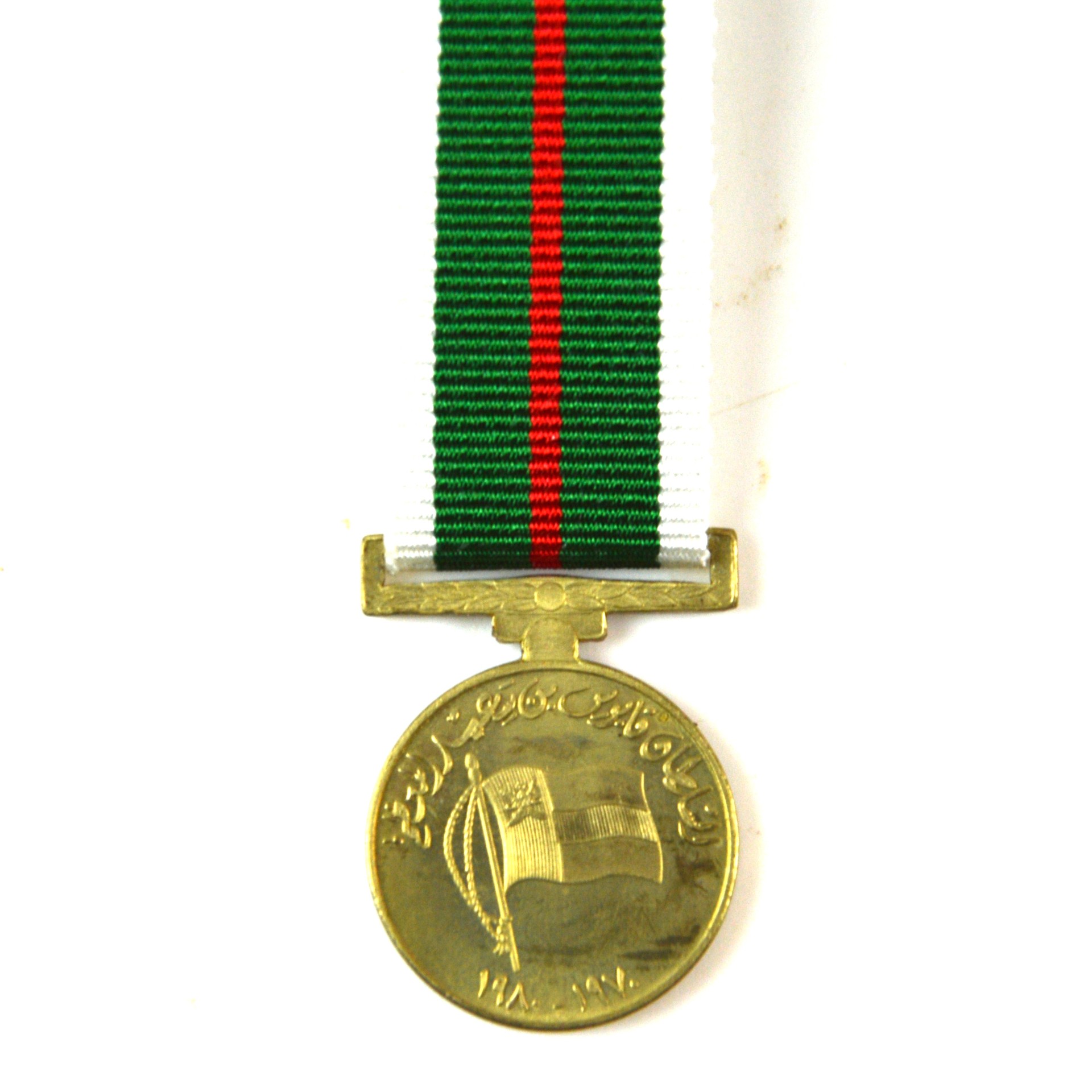 The miniature medal is produced in a flat gilt finish consistent with Omani miniature medal production of the period, suspended from the correct white, scarlet and green ribbon. Omani Glorious 10th National Day Medal miniatures are collected as examples of Gulf States militaria, Omani regimental and service insignia, and medals associated with the Sultan’s Armed Forces during the modernisation era of the Sultanate of Oman. They are also frequently encountered in the collections of British Army and SAS veterans who served on secondment or attachment to the Sultan’s Armed Forces during the Dhofar campaign and its aftermath.