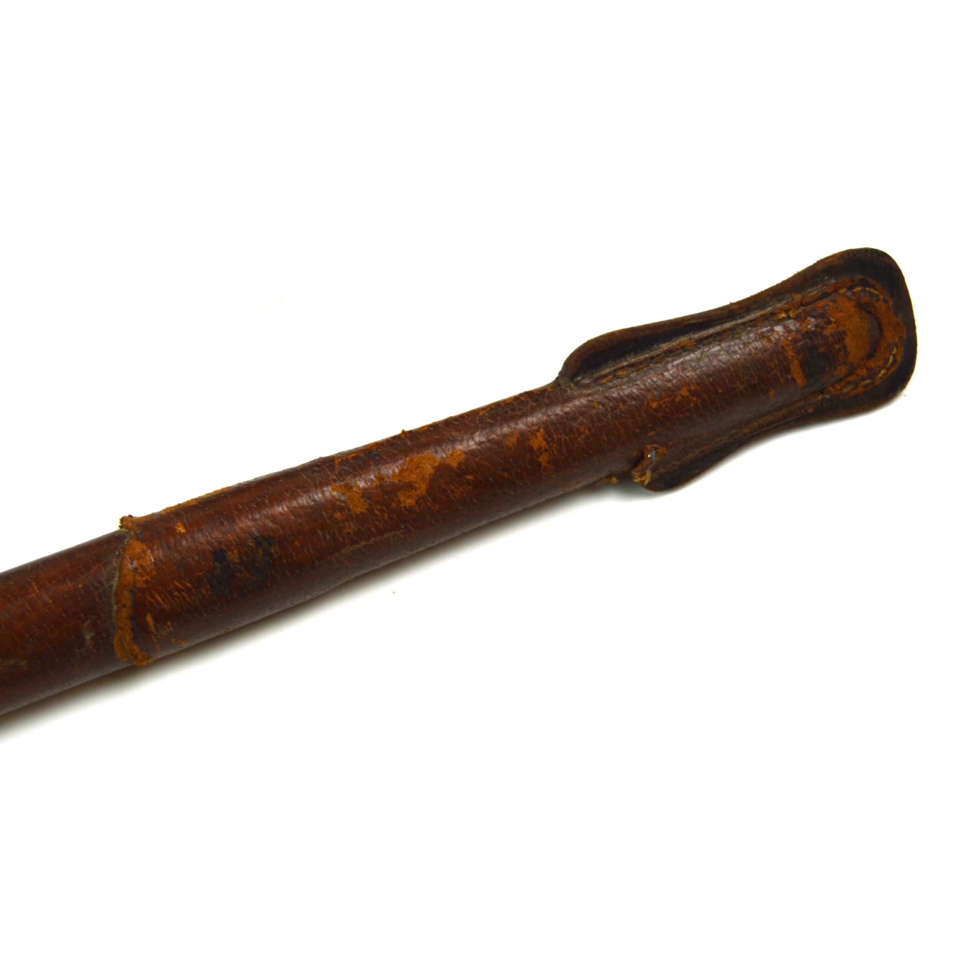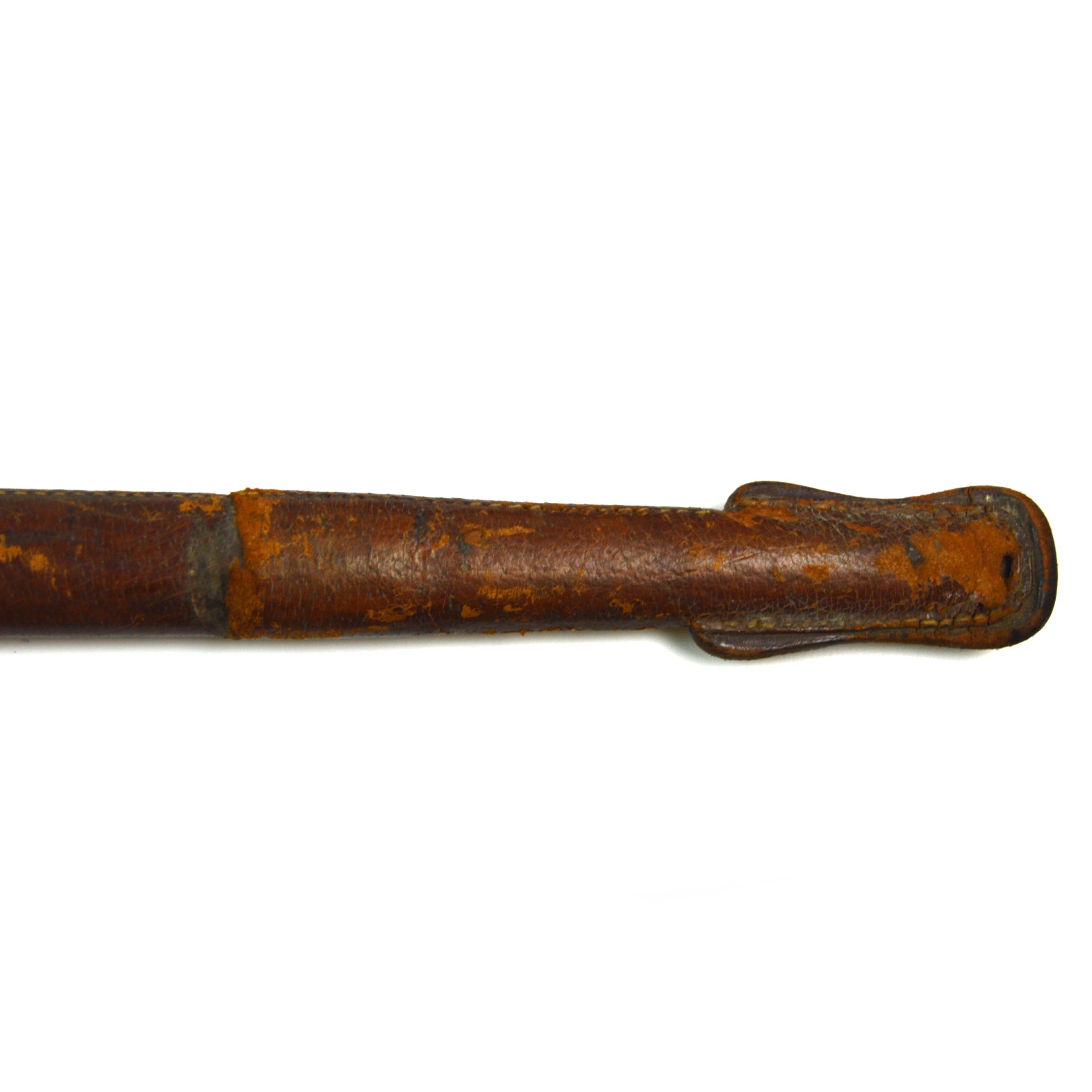 Condition: Good, some discolouration to the blade with some deep pits towards the bottom of the spine. The leather scabbard has several patches of damage as well as a damaged chape.