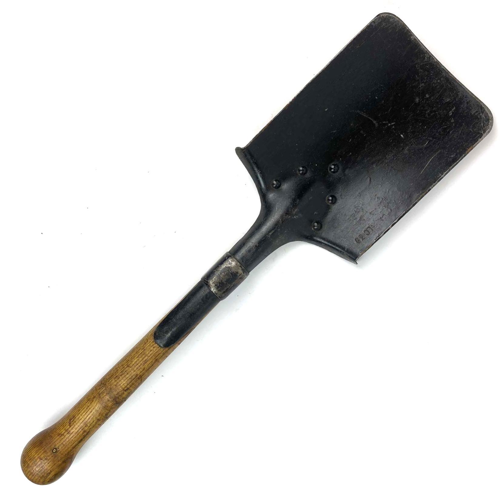 Original German Third Reich Entrenching Tool in artificial carrier. Spade head marked “LC 39”, and the carrier marked with the waffenampt and makers mark “jgh” (Stahlwerke Brüninghaus A.G., Werk Vorhalle, Hagen-Vorhalle).